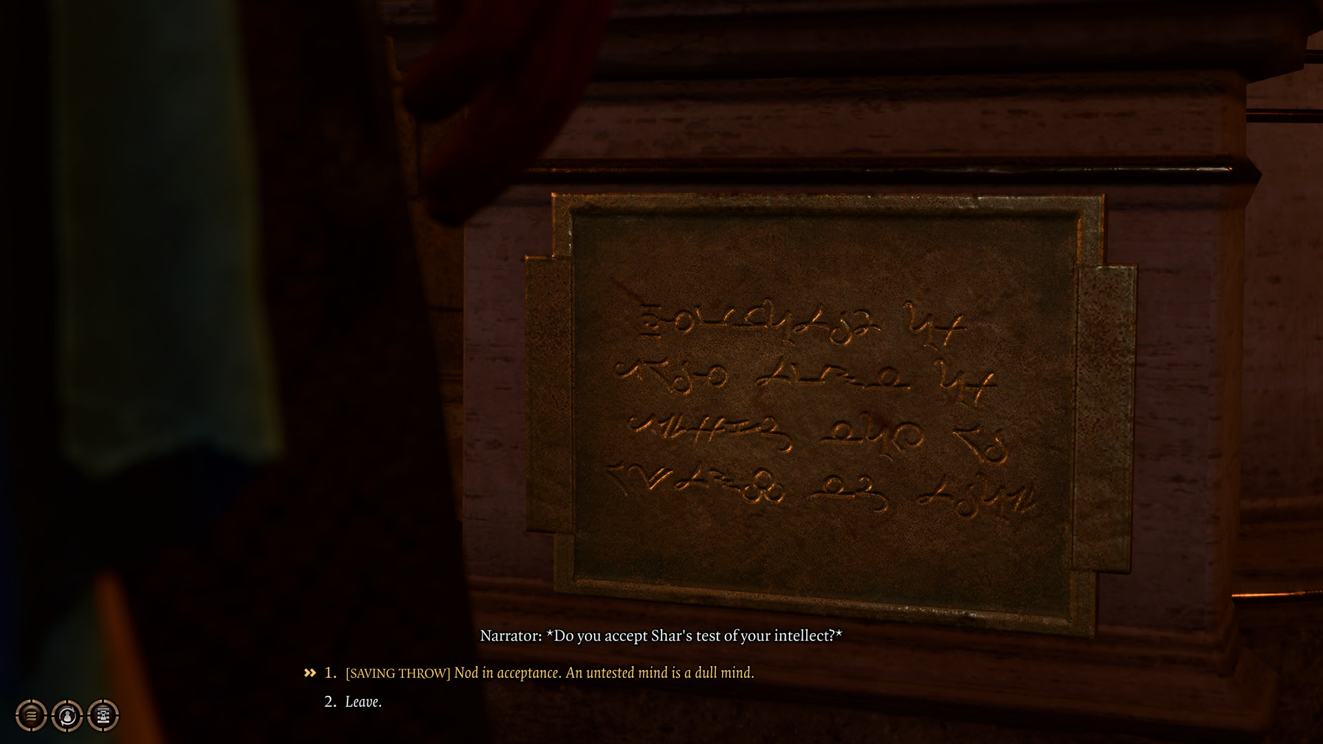 : The three statues we saw earlier each have an inscription: one for intelligence, one for charisma, and one for wisdom.