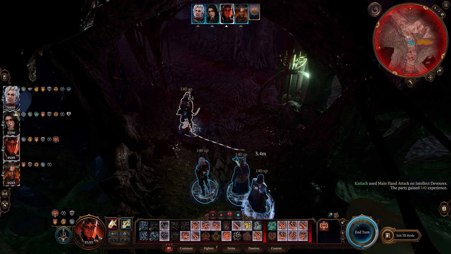 : In one turn, we have Karlach attack six times. The order goes: