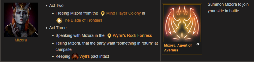 : Mizora is out because we broke Wyll’s contract. The sword is more valuable than she is.