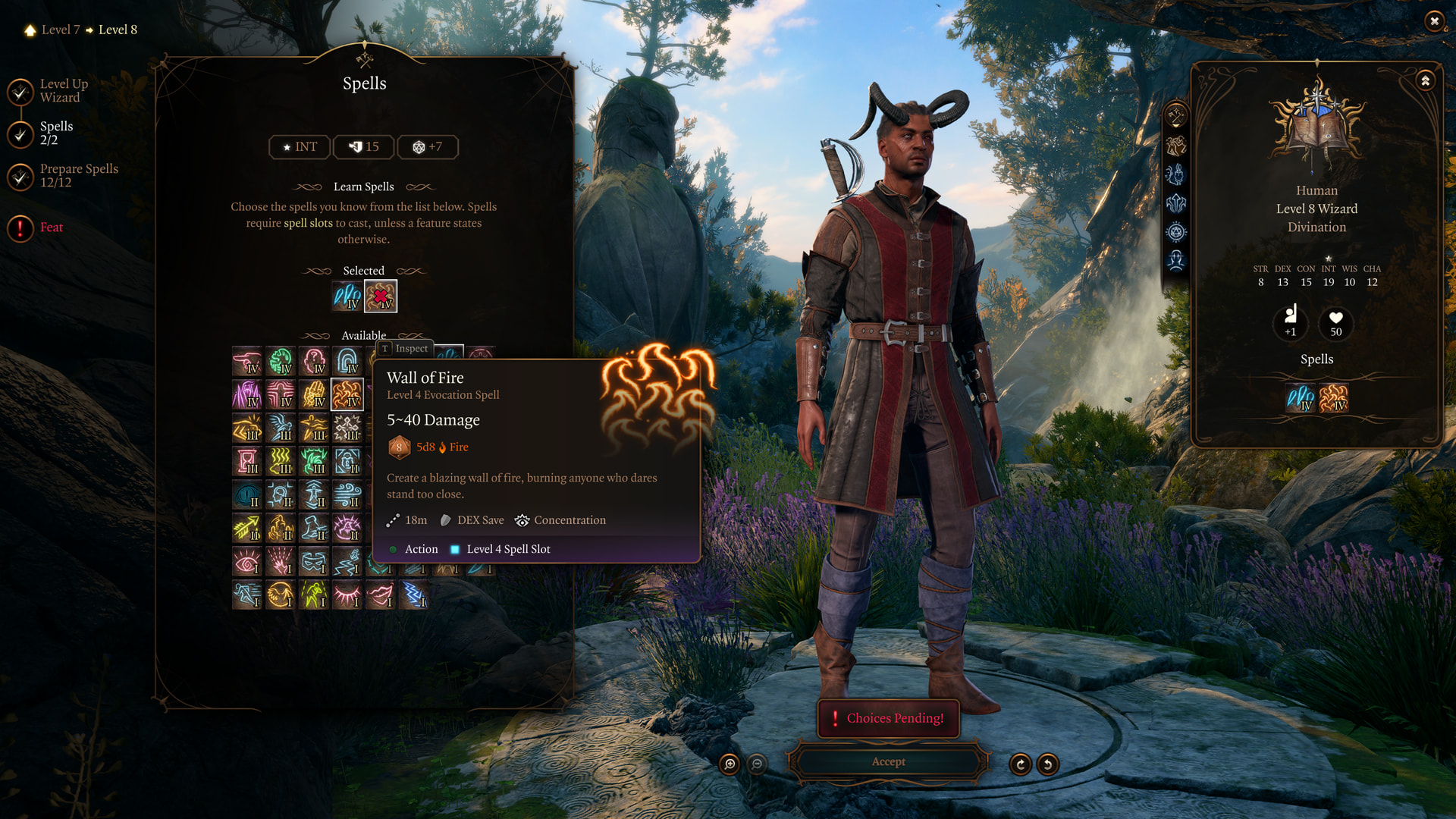 : Wyll gets respecced into a wizard. The only really important spell is Wall of Fire. Let’s get moving into the hole.