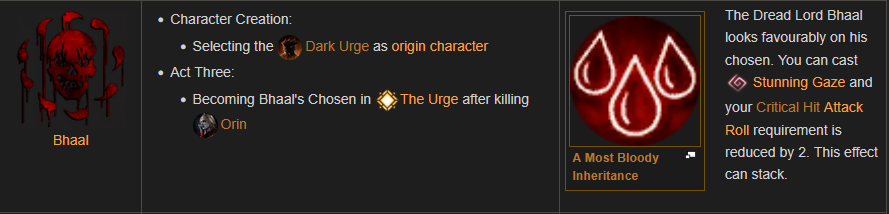 : We can’t get Bhaal because we’re not The Dark Urge. The Dark Urge has a whole plotline involving becoming Bhaal’s chosen that we won’t see.