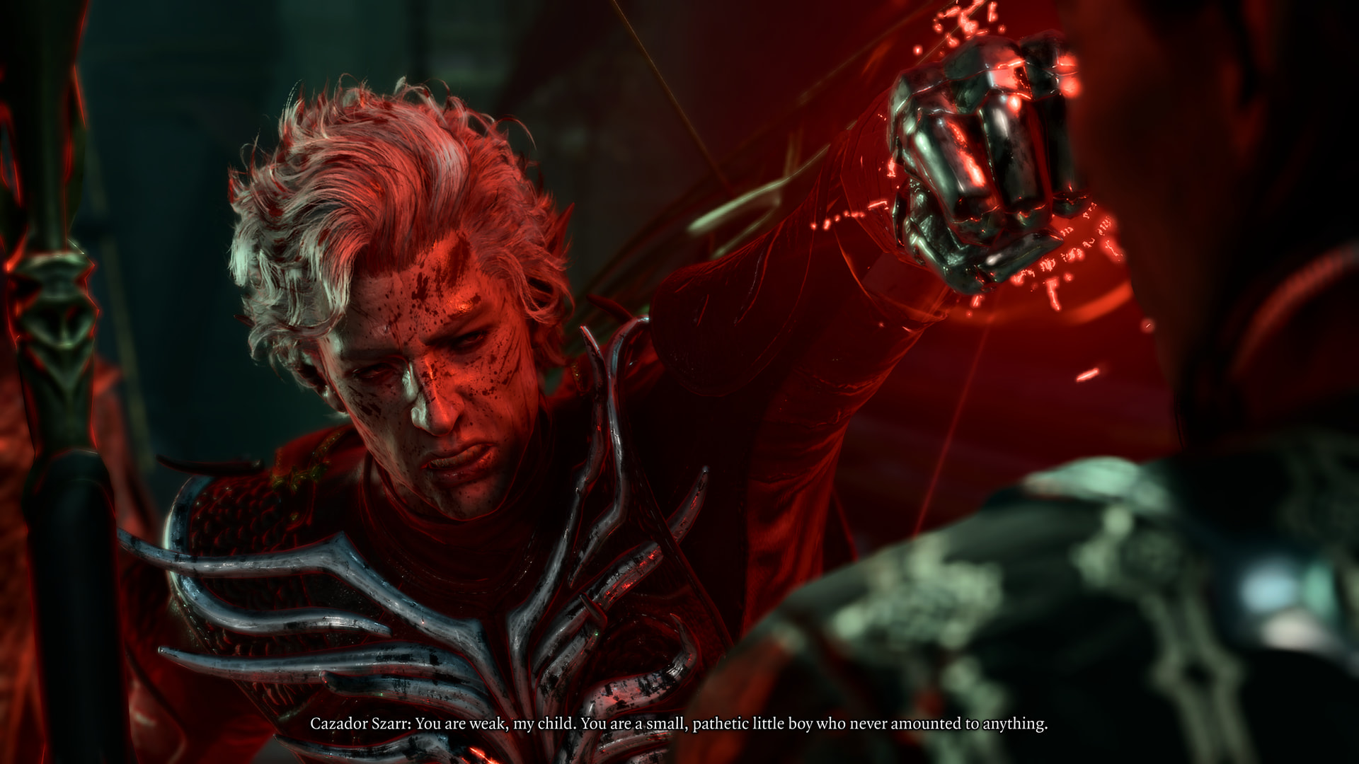 : Cazador does a gloating villain speech and then does the Darth Vader “fuck you” thing to stop Astarion punching him.