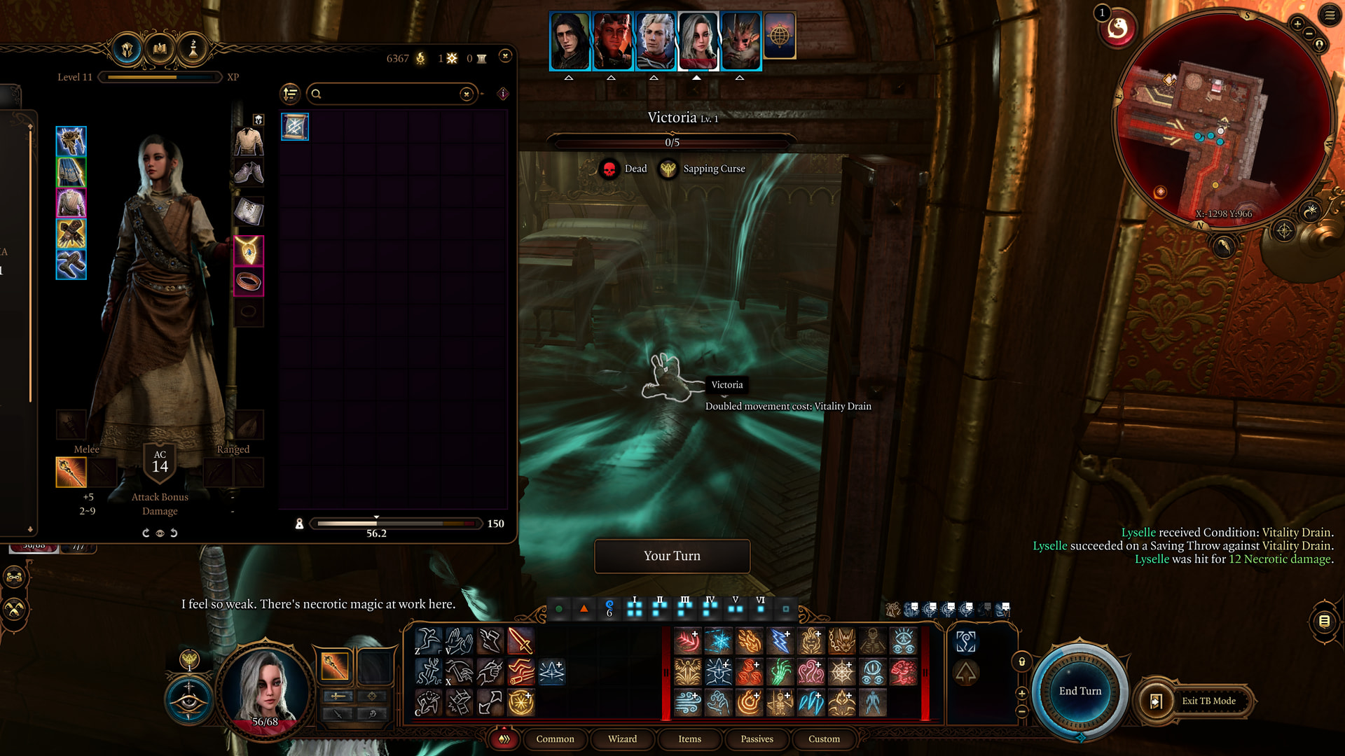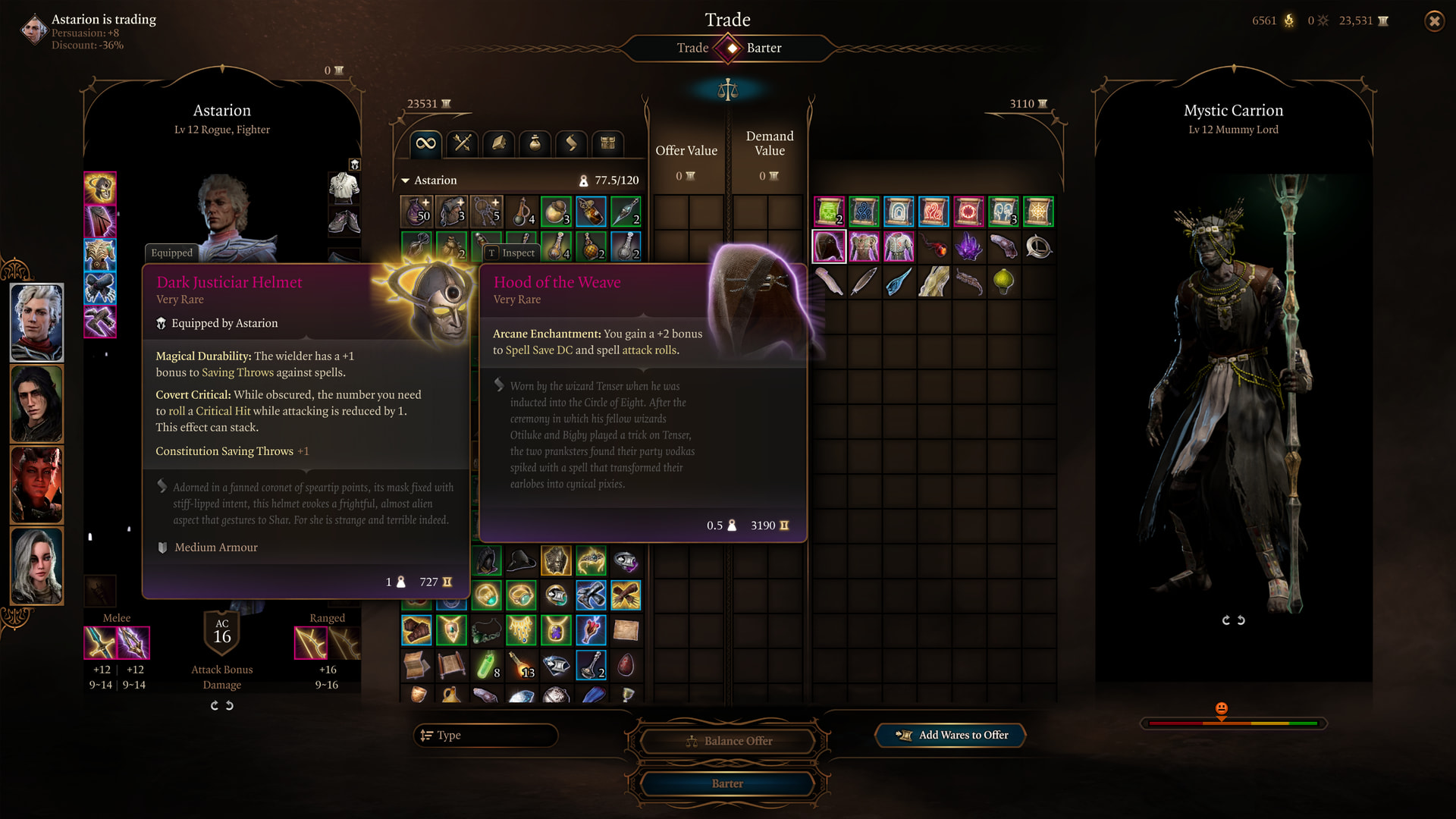 : What we’re actually here for is this. The Hood of the Weave is the best hat for casters who aren’t using an Eldritch Blast build. With this, Lyselle’s spell DC increases to 25.