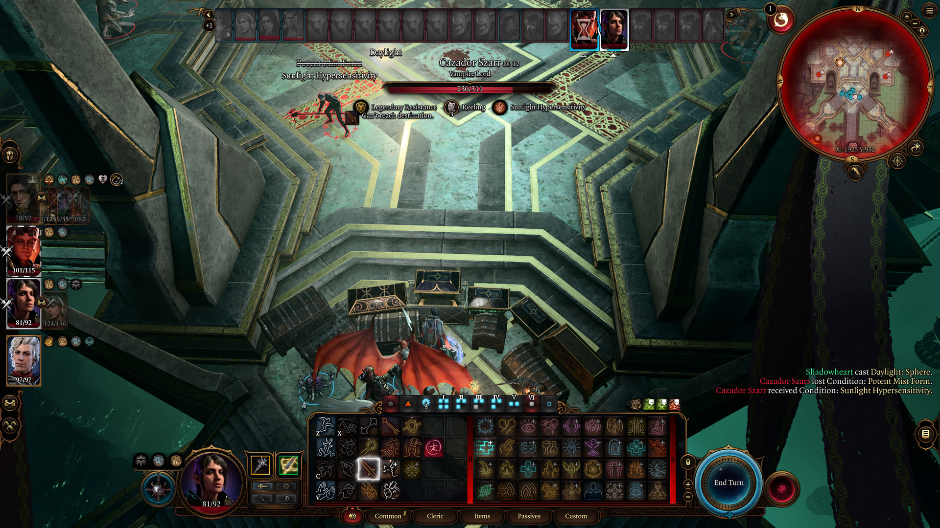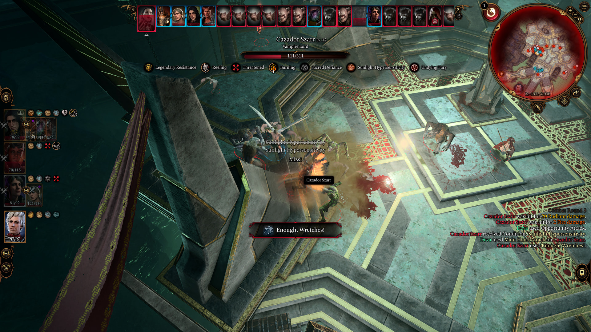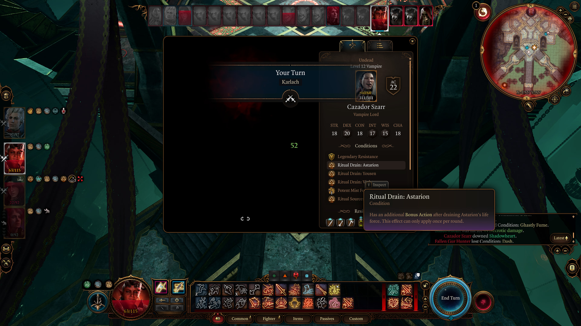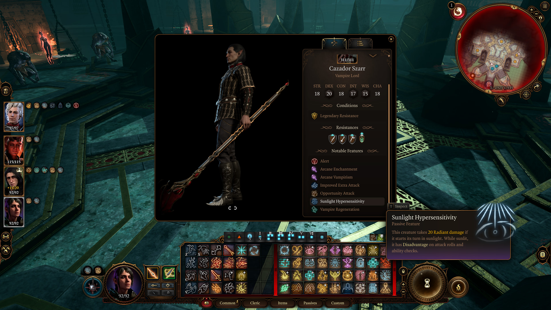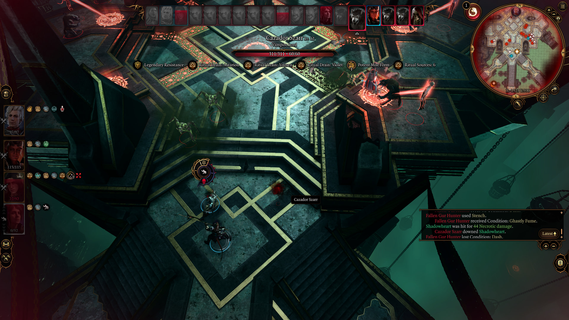 : Cazador gets bonuses for each vampire in the circle. He gets extra bonuses for Astarion, Violet, and Yousen. This increases his damage to the point where his mist form can instantly kill.