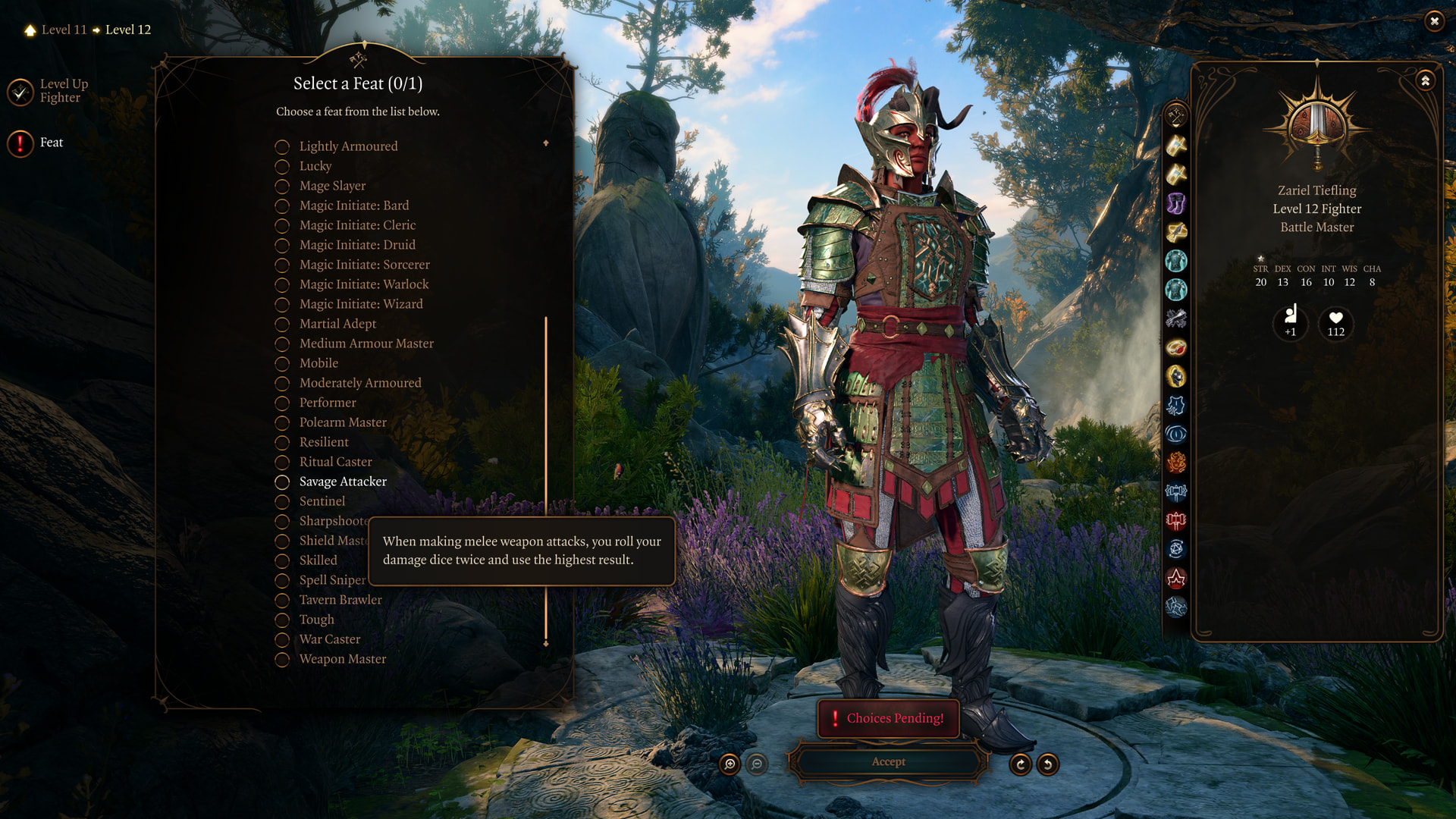 : Karlach remains a fighter all the way to 12th level. Her final feat is Savage Attacker, which gives her Advantage on damage rolls.