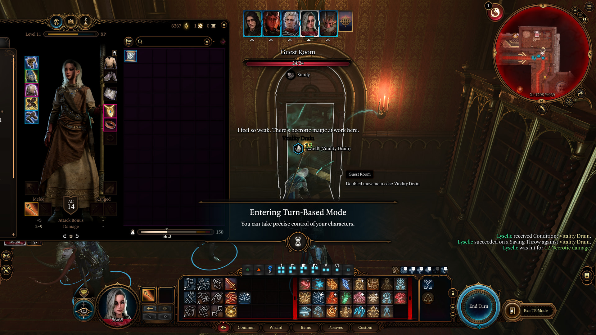 : None of this is even remotely a challenge. The party takes a bit of damage from bat bites and the two vampire spawn who will aggro for no reason, but this isn’t a problem.