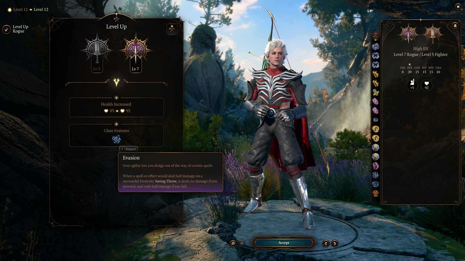 : Astarion takes his final level in Rogue, which gives him Evasion. We could get another feat if he went Fighter instead, but it’s not going to make a huge difference.