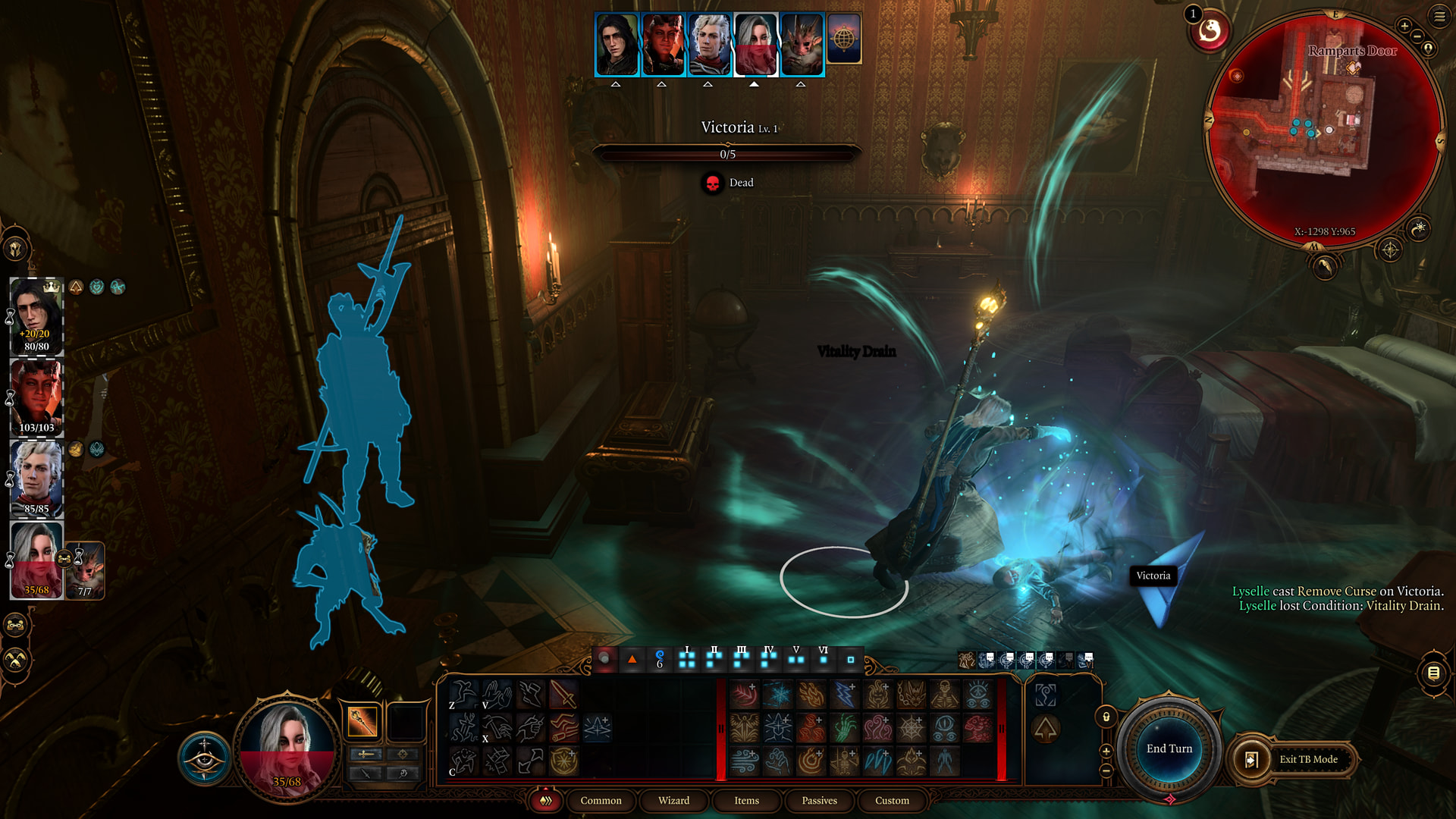 : We need to have Lyselle walk in and cast Remove Curse on the body. This removes the haunt.