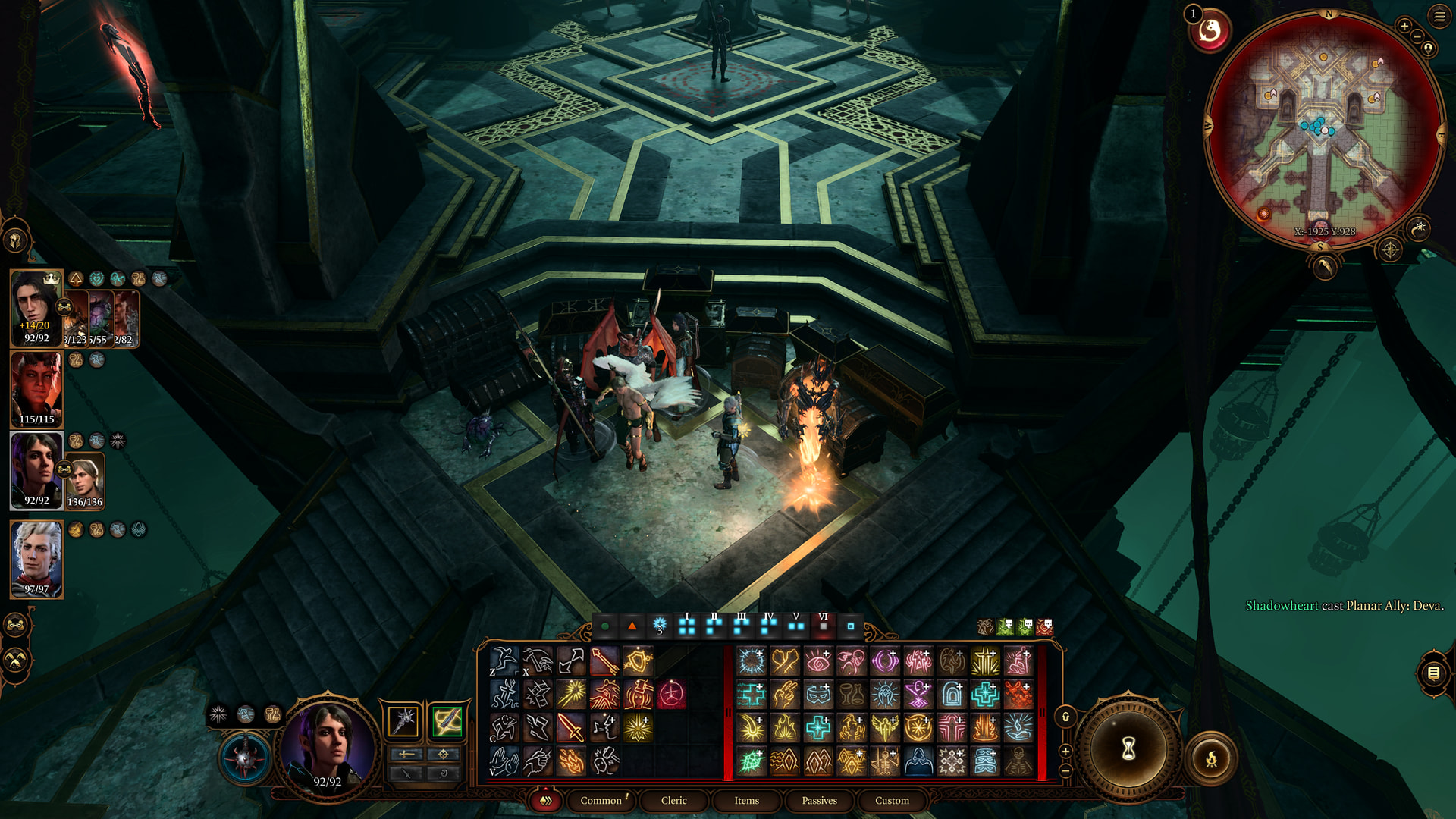 : I switch Lyselle out for Shadowheart. The first order of business is to cast Heroes Feast. I made the mistake of not having all the summons out - have them out when you do this.
