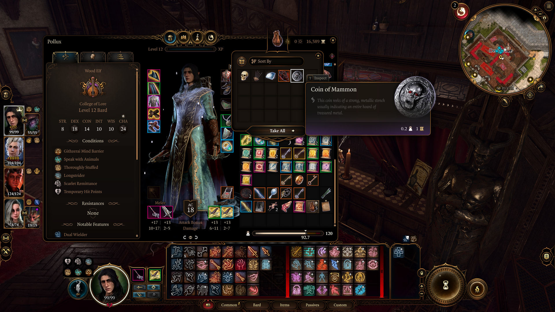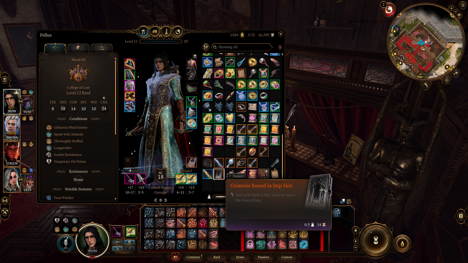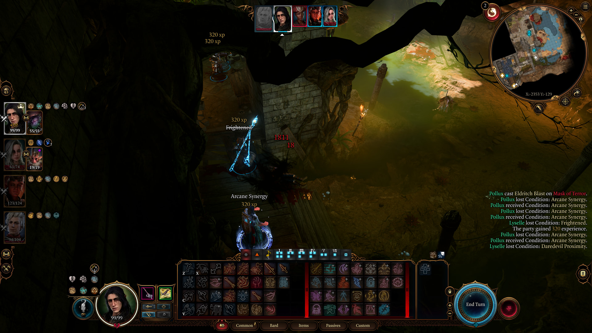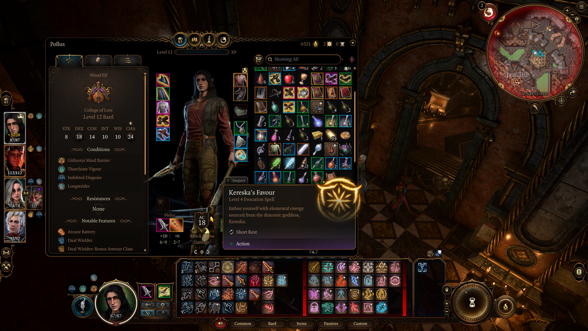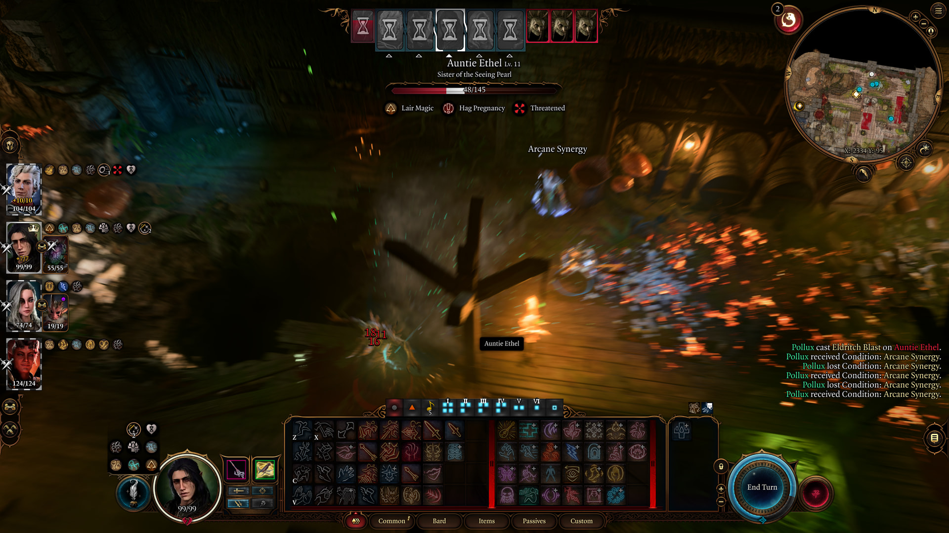 : Pollux maxes out the bonus from Cazador’s dagger and now hits extremely hard. That’s nearly 50 damage from one spell, not counting the shot he gets with his off-hand ranged weapon.