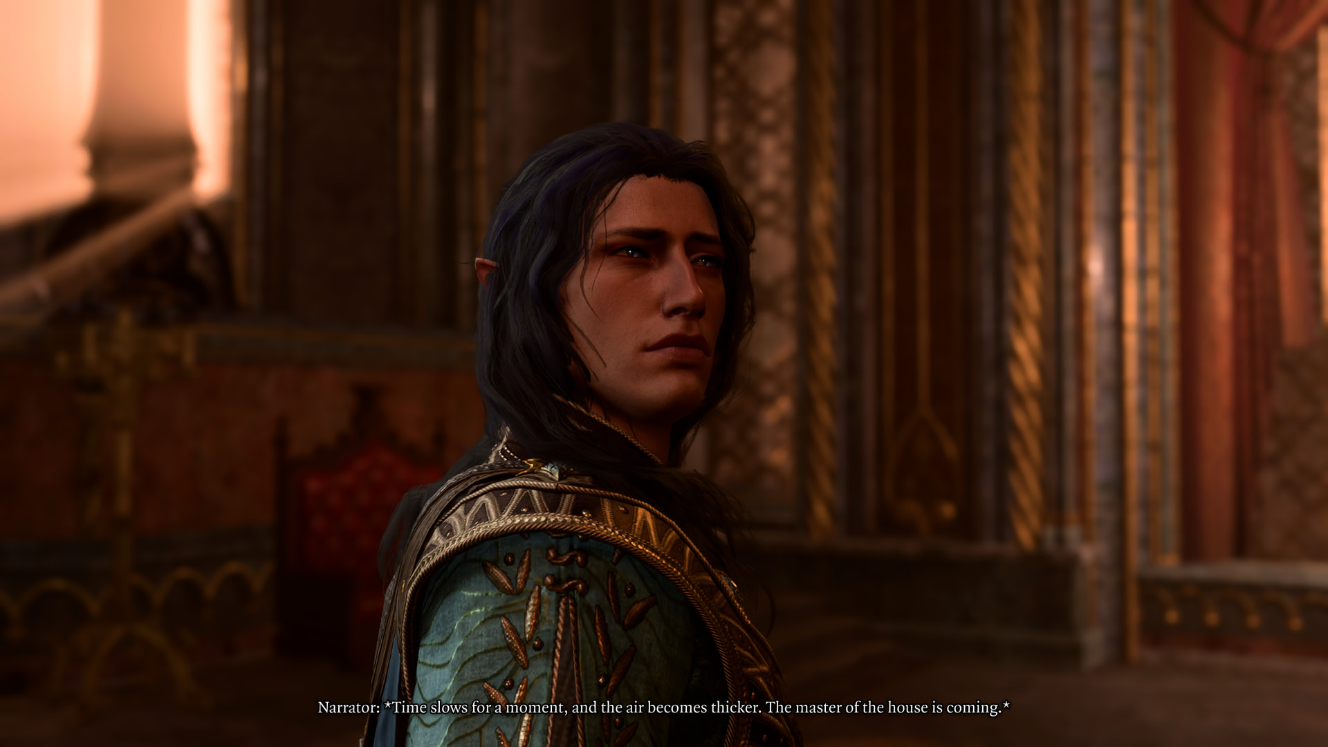 : “You.”Narrator: “Time slows for a moment, and the air becomes thicker. The master of the house is coming.”