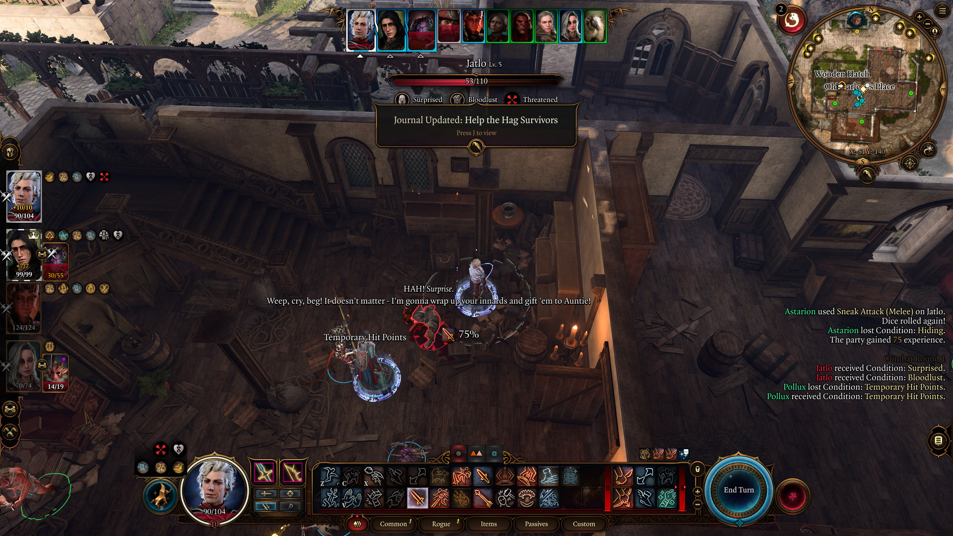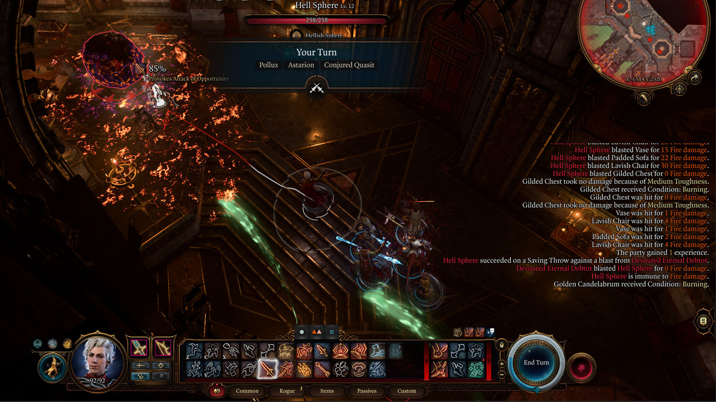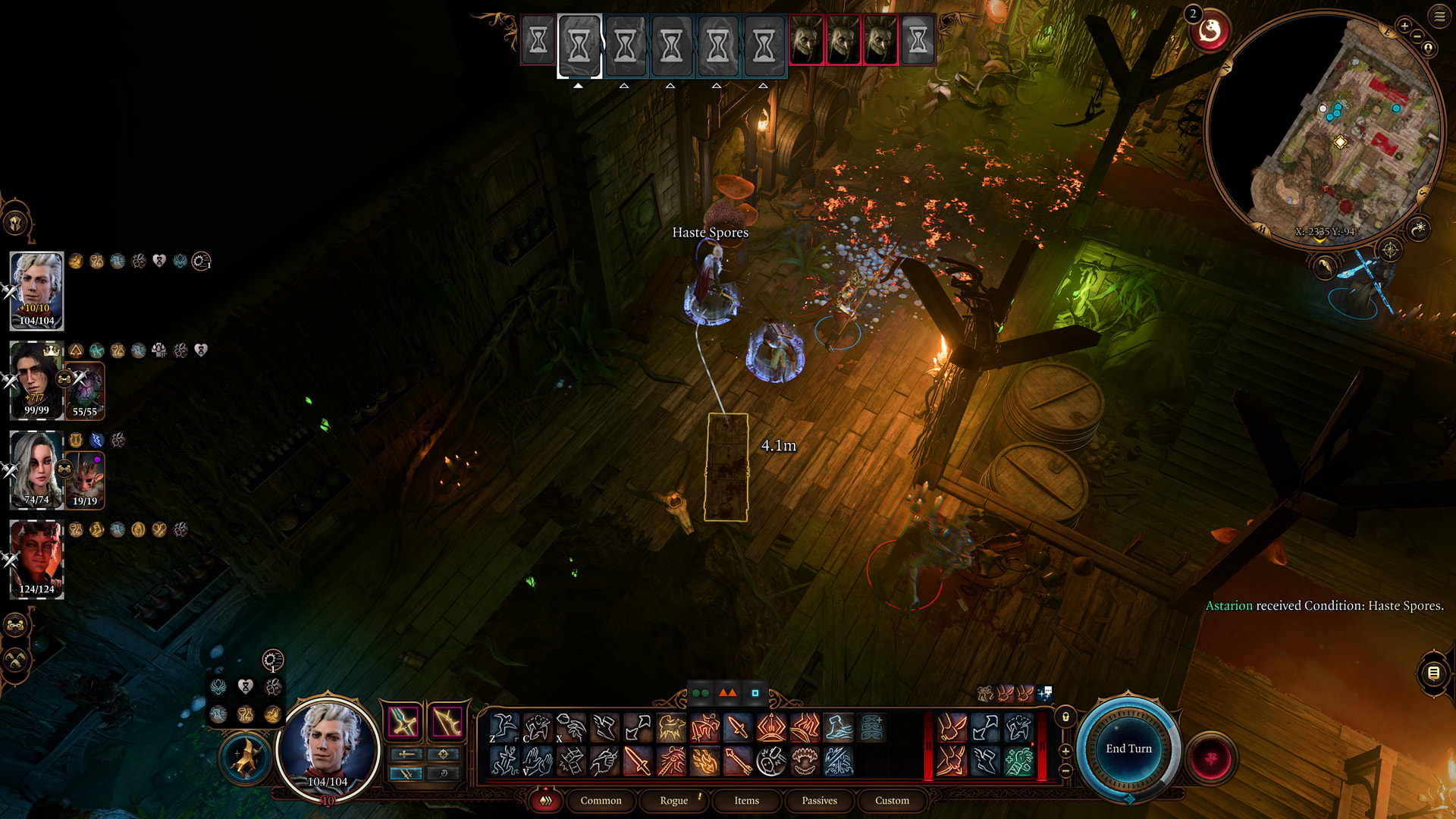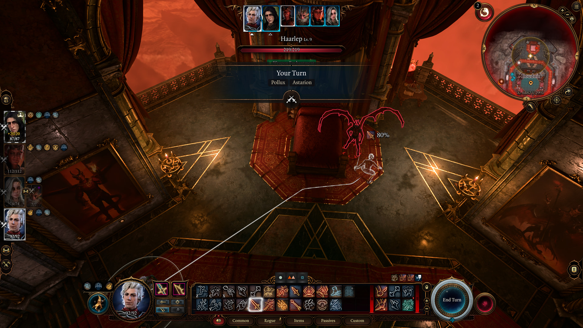 : Because he has Haste, Astarion can still attack twice. Pollux follows up, and she’s now down to 25% HP.