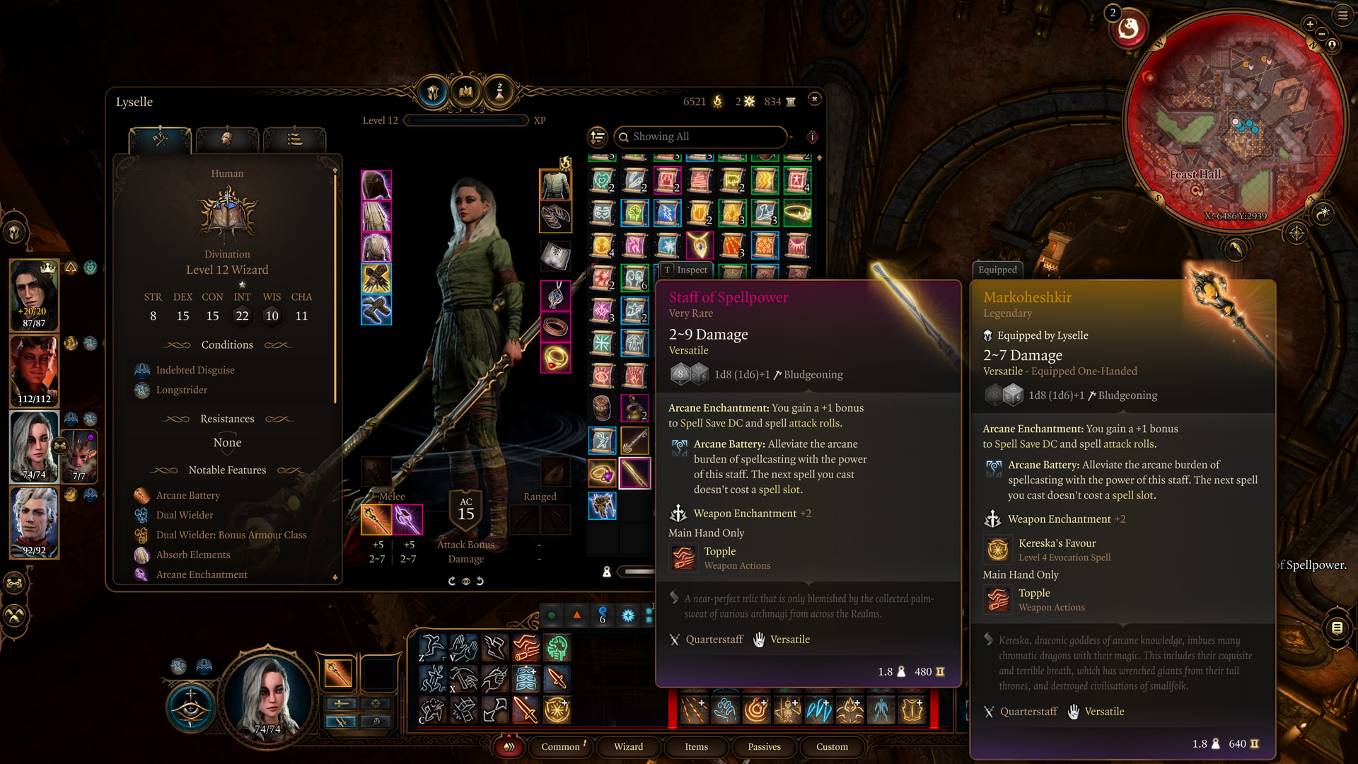 : Lyselle instead uses this new staff, which is Markoheshkir with the serial numbers filed off. It can give you a SECOND free 6th-level spell slot, PER CHARACTER.