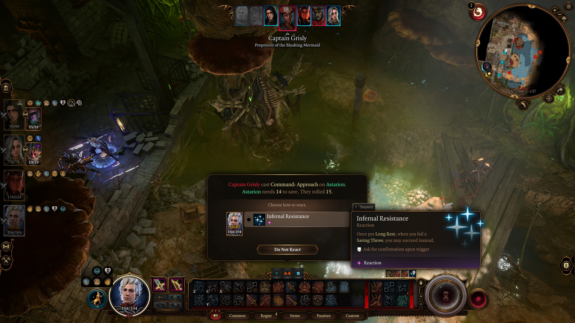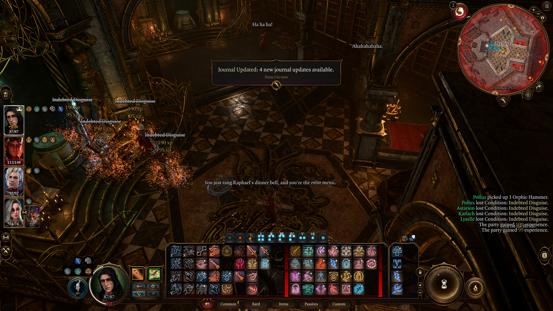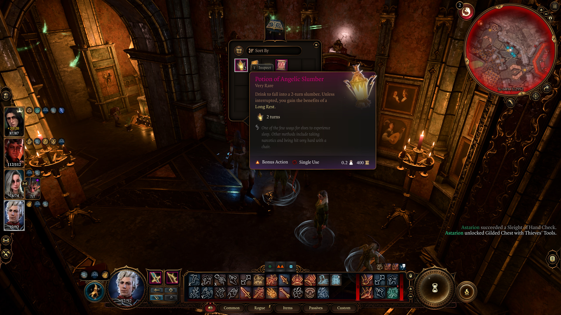 : Lyselle now has a spell DC of 26. By the time we reach Raphael, it will be a 28. We need to long rest now to restore our item cooldowns.