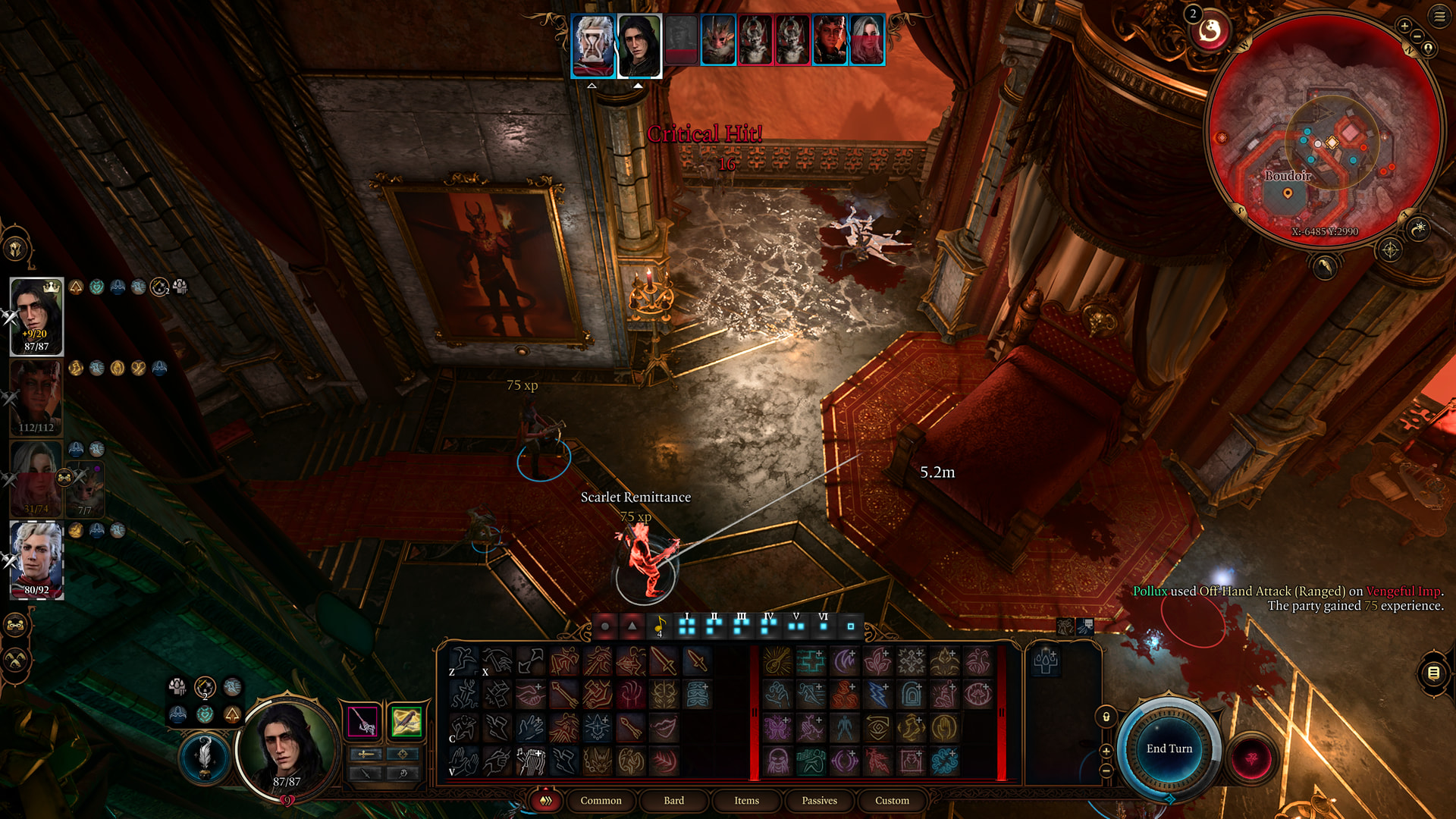 : Pollux maxes out Cazador’s dagger again, cementing himself as the party’s best damage dealer without using limited resources.
