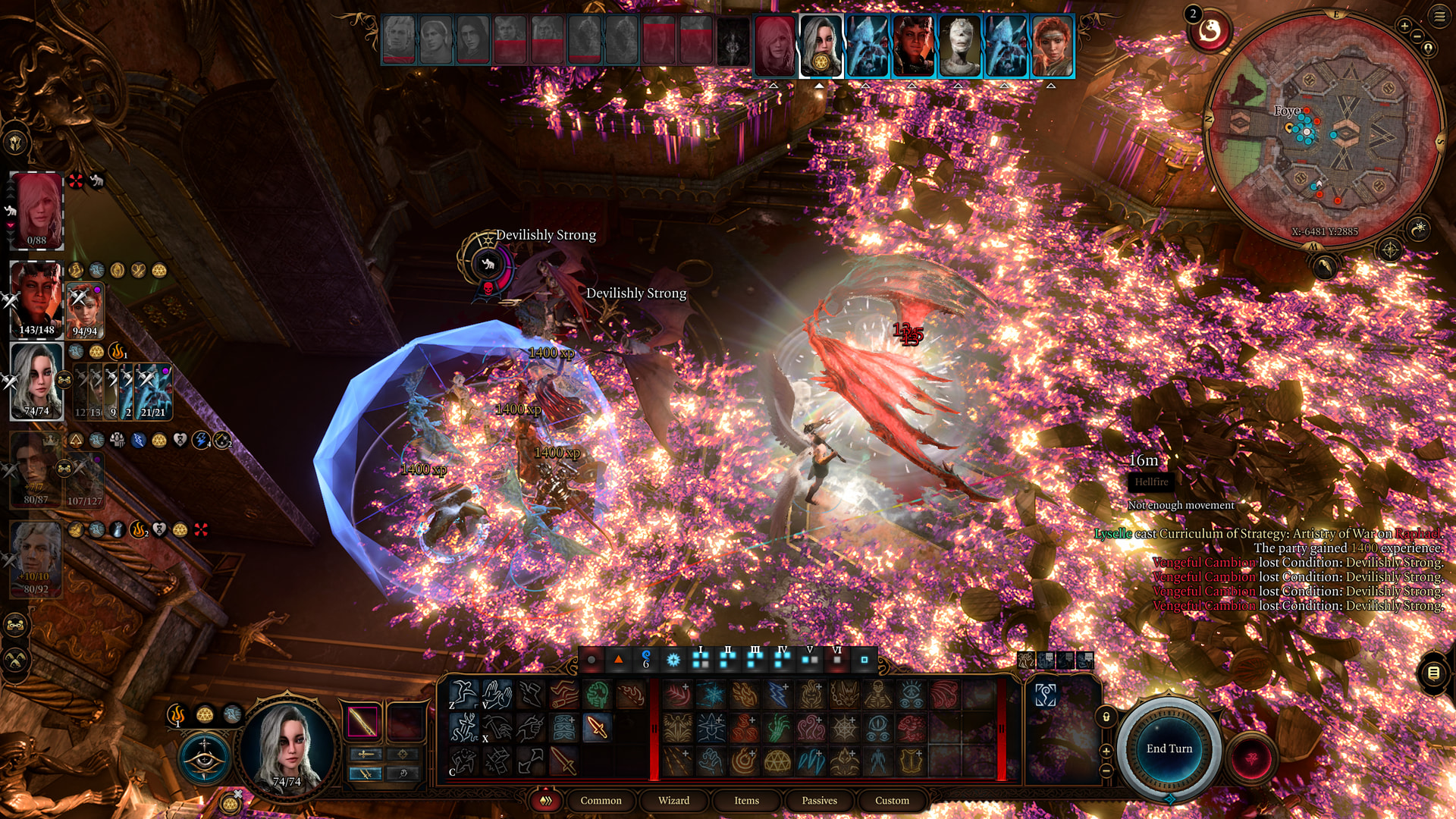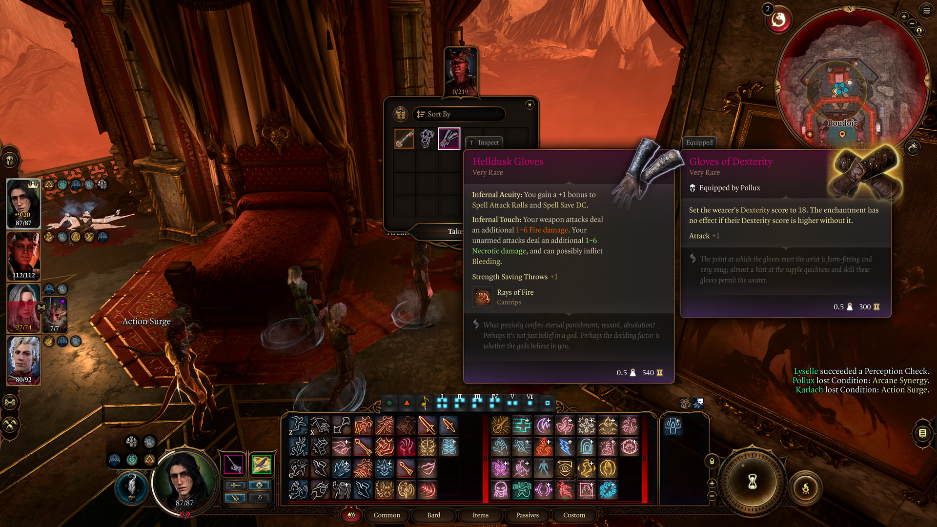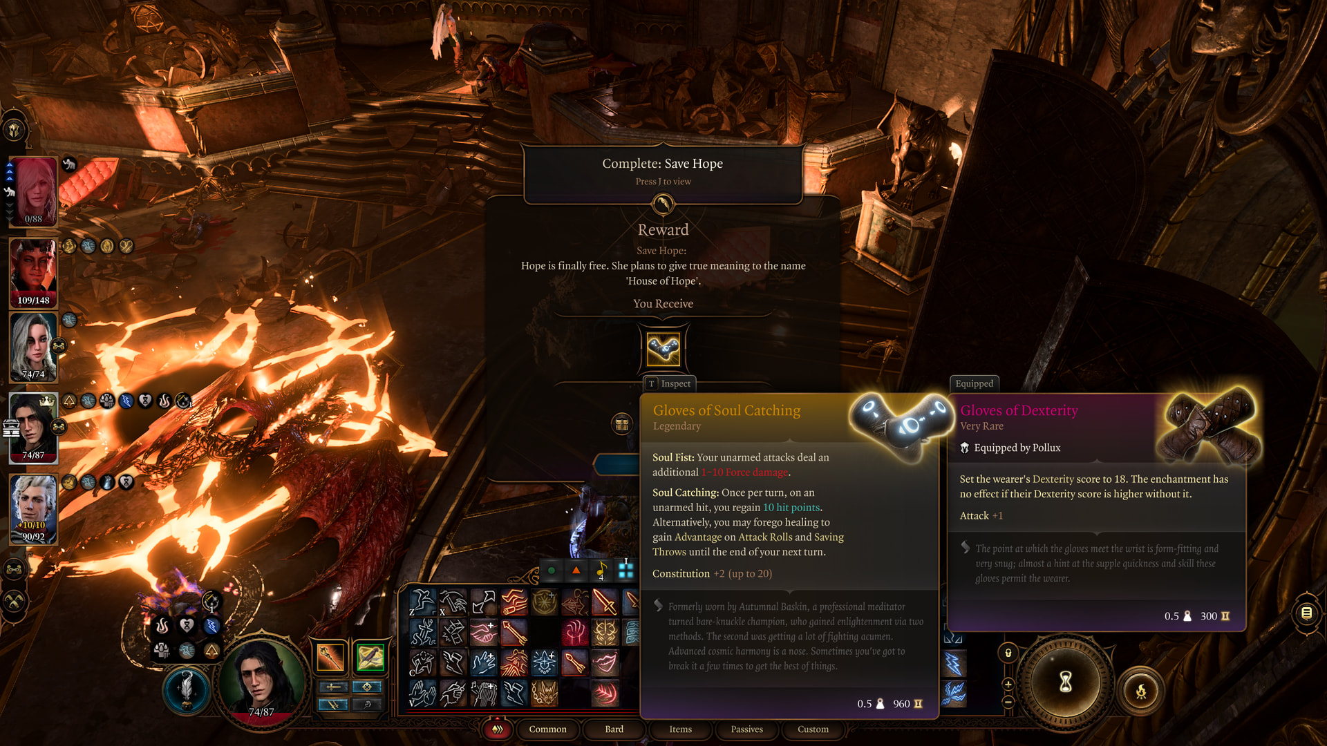 : Haarlep drops the Helldusk Gloves, which are going to Lyselle to get her spell DC to 28. This is as high as it is possible to go for a wizard.