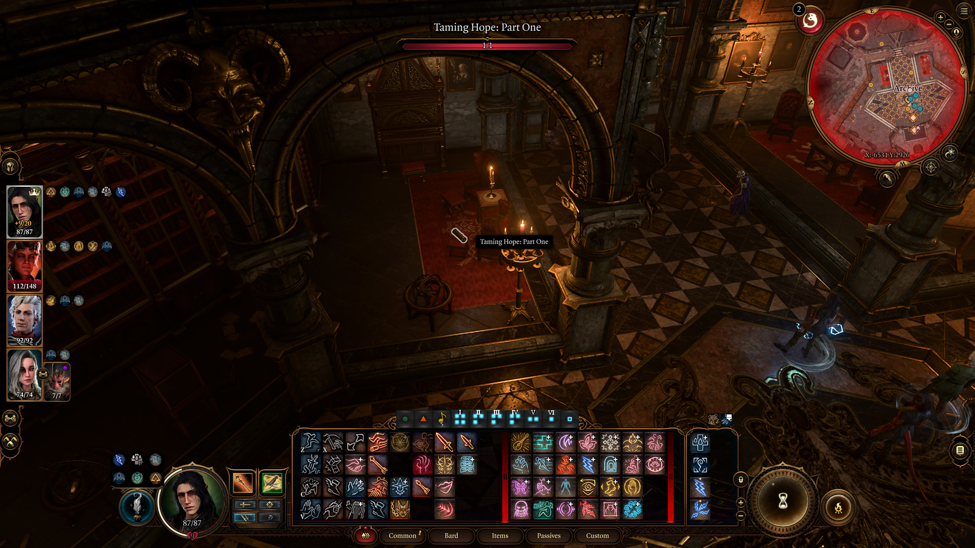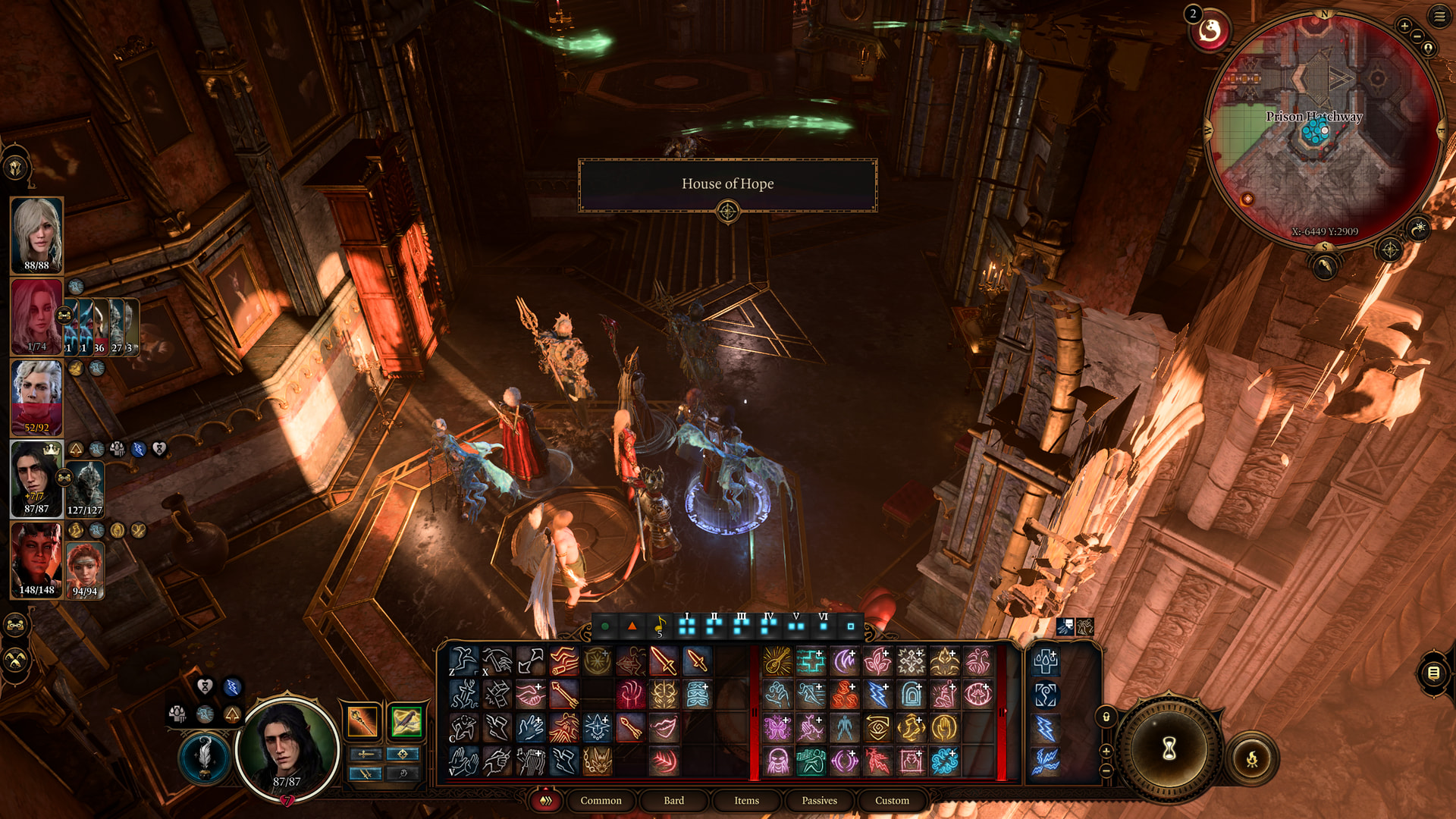 : We now get Hope as a fifth party member. She is a cleric, and has some unique abilities you’ll want to know about. The game gives you a speed bump fight in the dining room to figure these out.