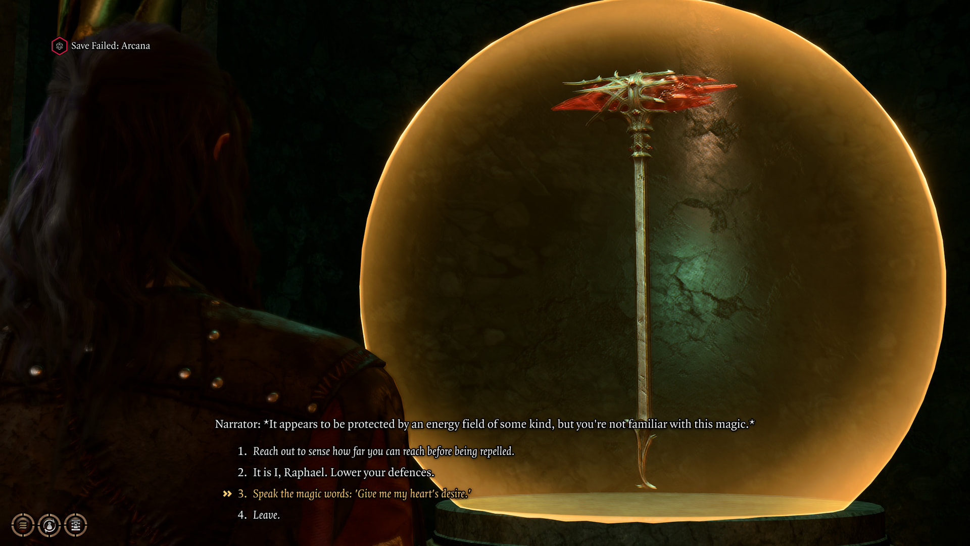 : This gem on one wall is very important. You need a Wisdom check (DC 10) and an Arcana check (DC 20) to unlock it. You only get one attempt per character, so make sure to save.
