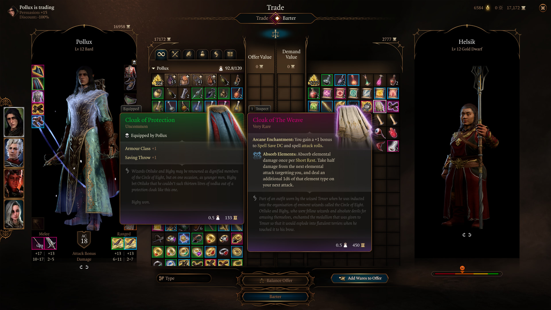 : She sells a very useful cloak for Lyselle that completes the “Weave” set.