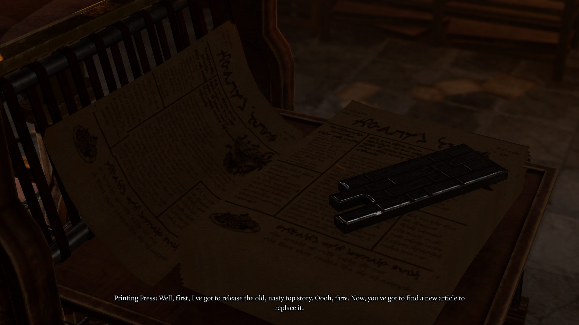 - [BALDURIAN] You work for the Baldur’s Mouth Gazette, I presume.