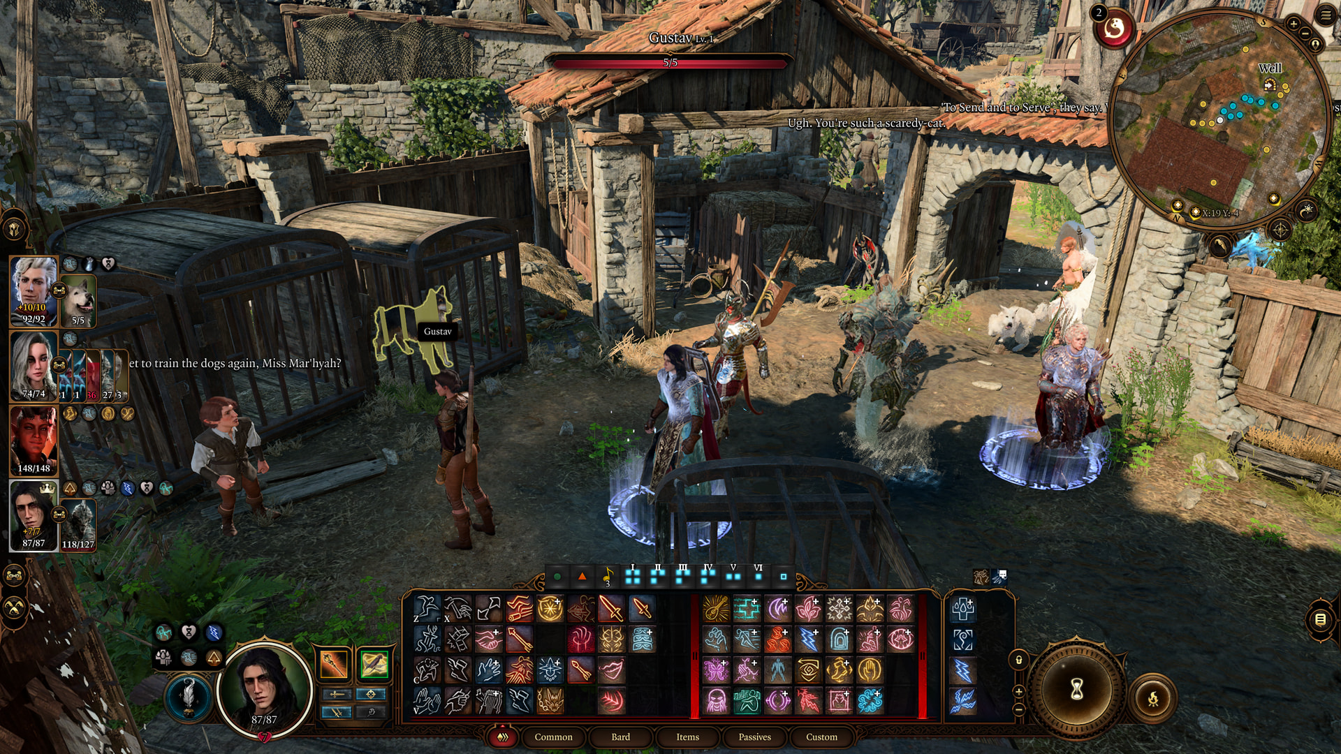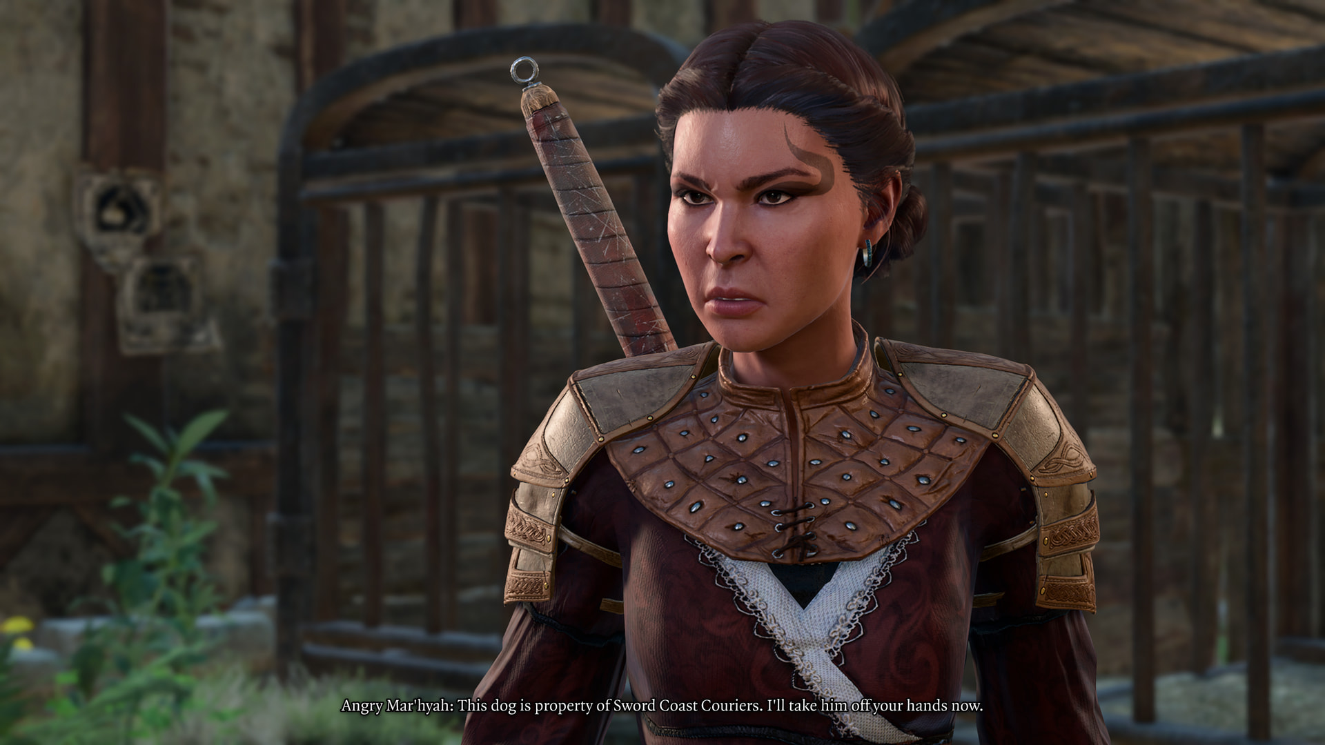 : Before we do though, there’s one minor thing we can do. In the back yard, there are a couple of dogs in cages. These are named after Swen Vincke’s dogs.