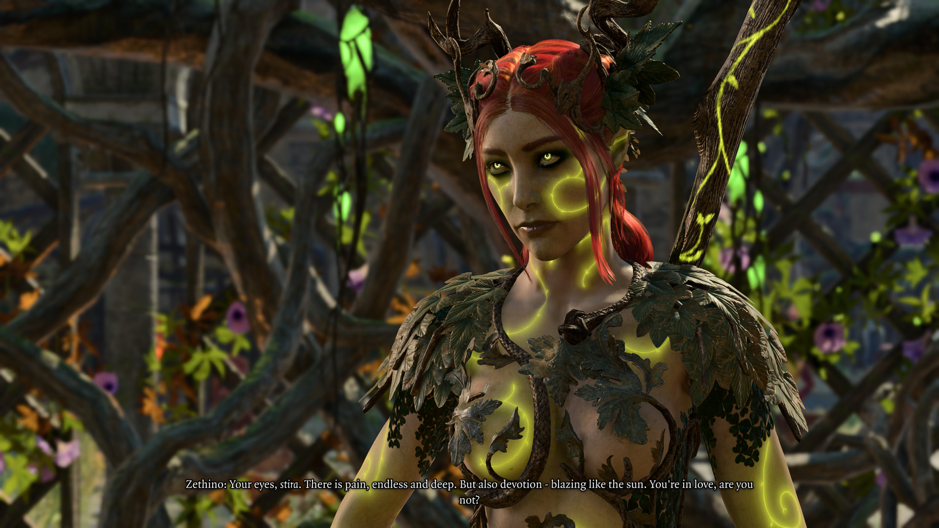 : The dryad sends Pollux to the Boyfriend Dimension, and then you have to answer three questions. Halsin’s are incredibly easy because he’s kind of a non-character.