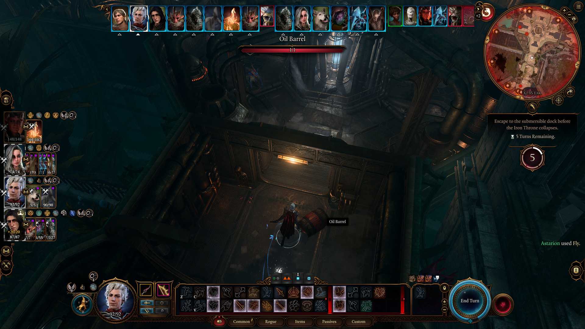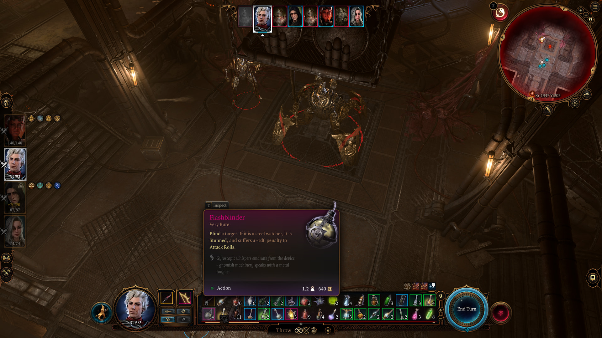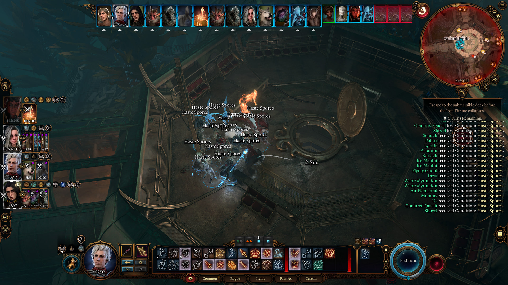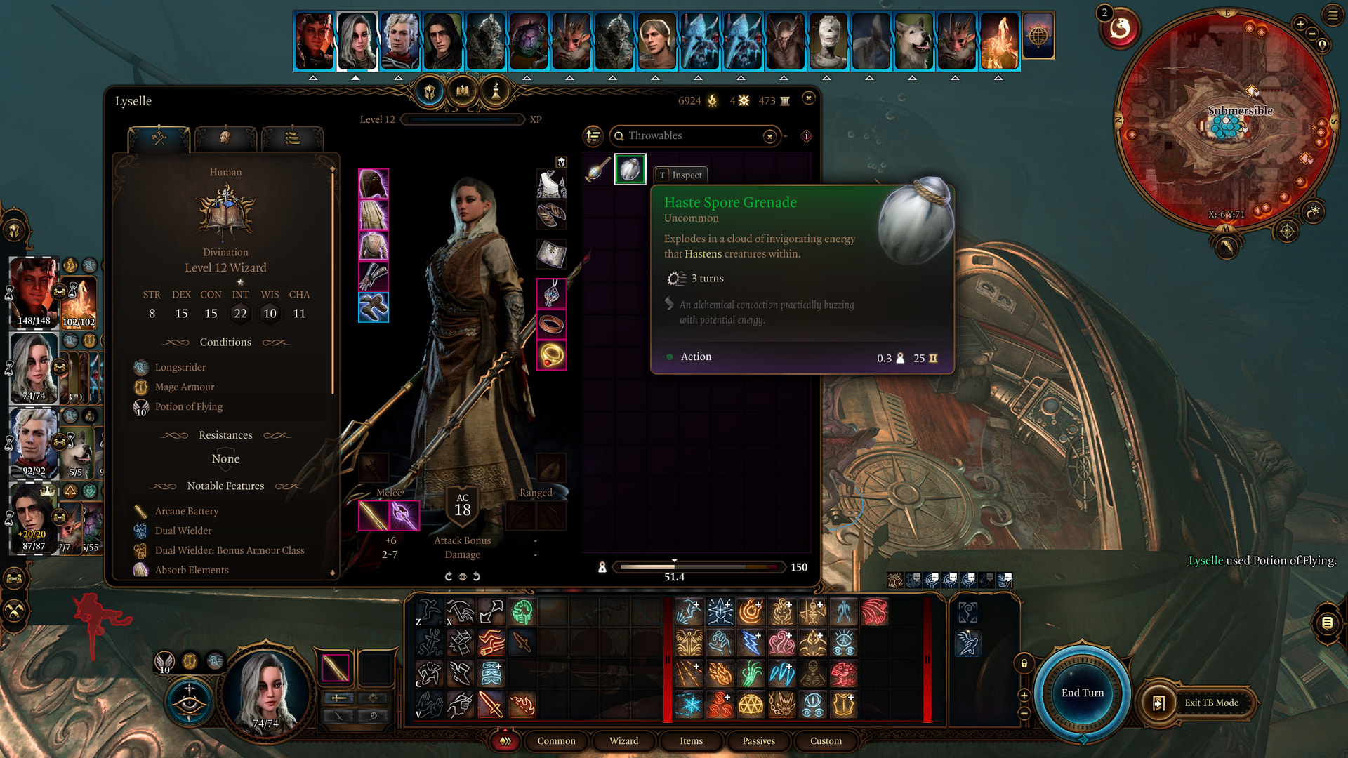 : Go turn-based mode and have everyone drink a potion of flying. DO NOT USE THE HASTE SPORE GRENADE YET. Give it to your highest initiative character and have them drink an Elixir of Vigilance if you have any left.