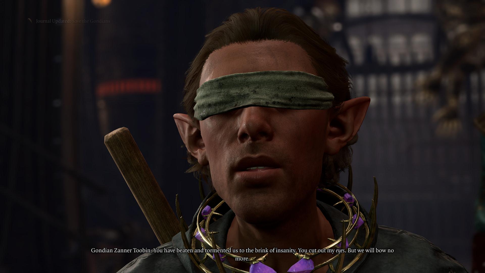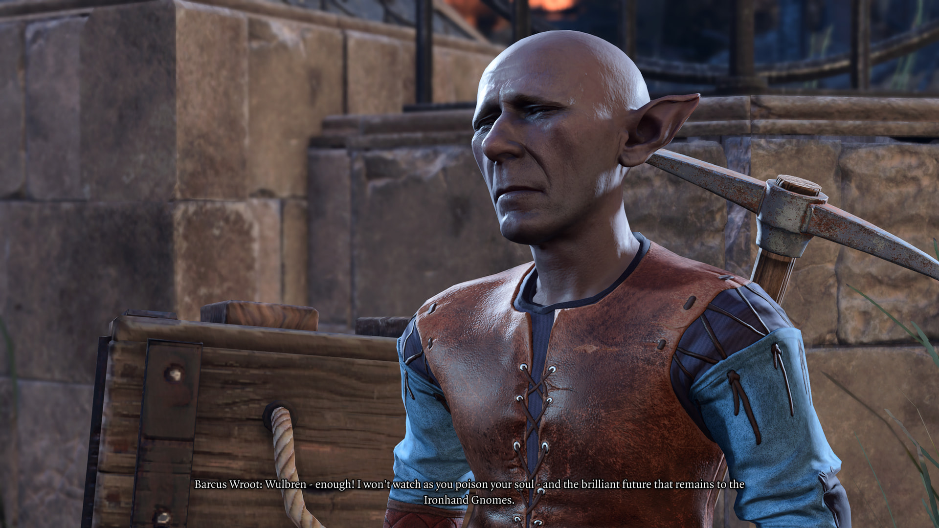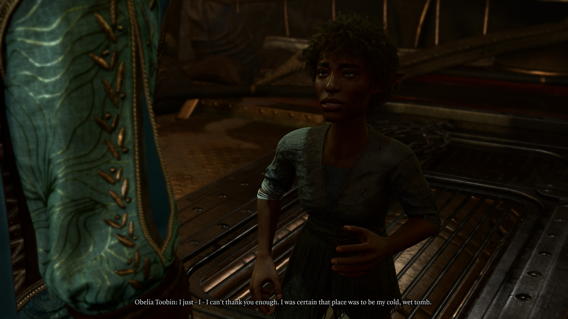 Obelia Toobin: “I just - I - I can’t thank you enough. I was certain that place was to be my cold, wet tomb. You saved us. Saved us all. I thought it impossible, b-but you DID it! We were kept hostage to control our families in the Steel Watch Foundry. To keep them building Gortash’s death machines. Please. They need to know what happened here. They have no reason to obey Gortash anymore. If they rebel, it’ll put a dent in Gortash’s steel might.”