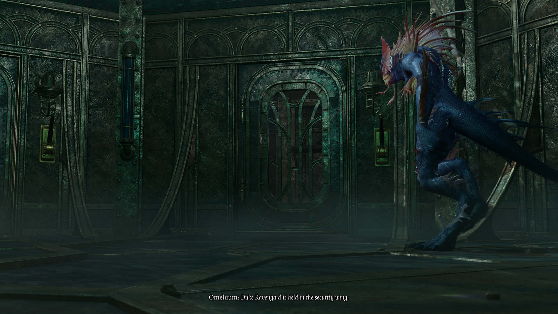 Omeluum: “Duke Ravengard is held in the security wing. Be careful. There are many hazards. This structure is collapsing.”