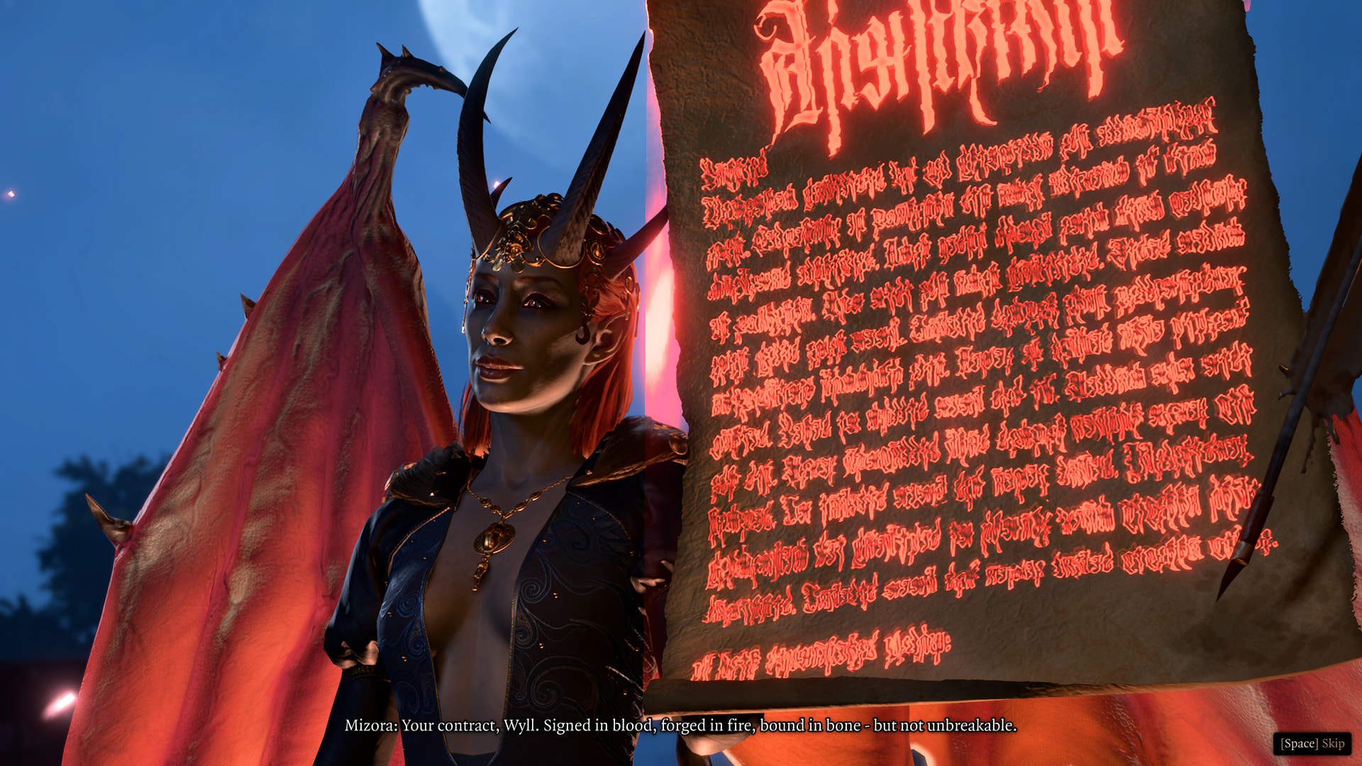 : Mizora breaks Wyll’s contract, and insists on staying in camp because BG3’s writers fucking love their stupid villains. Personally, I think it’s dumb as fuck that you can’t kill Mizora.