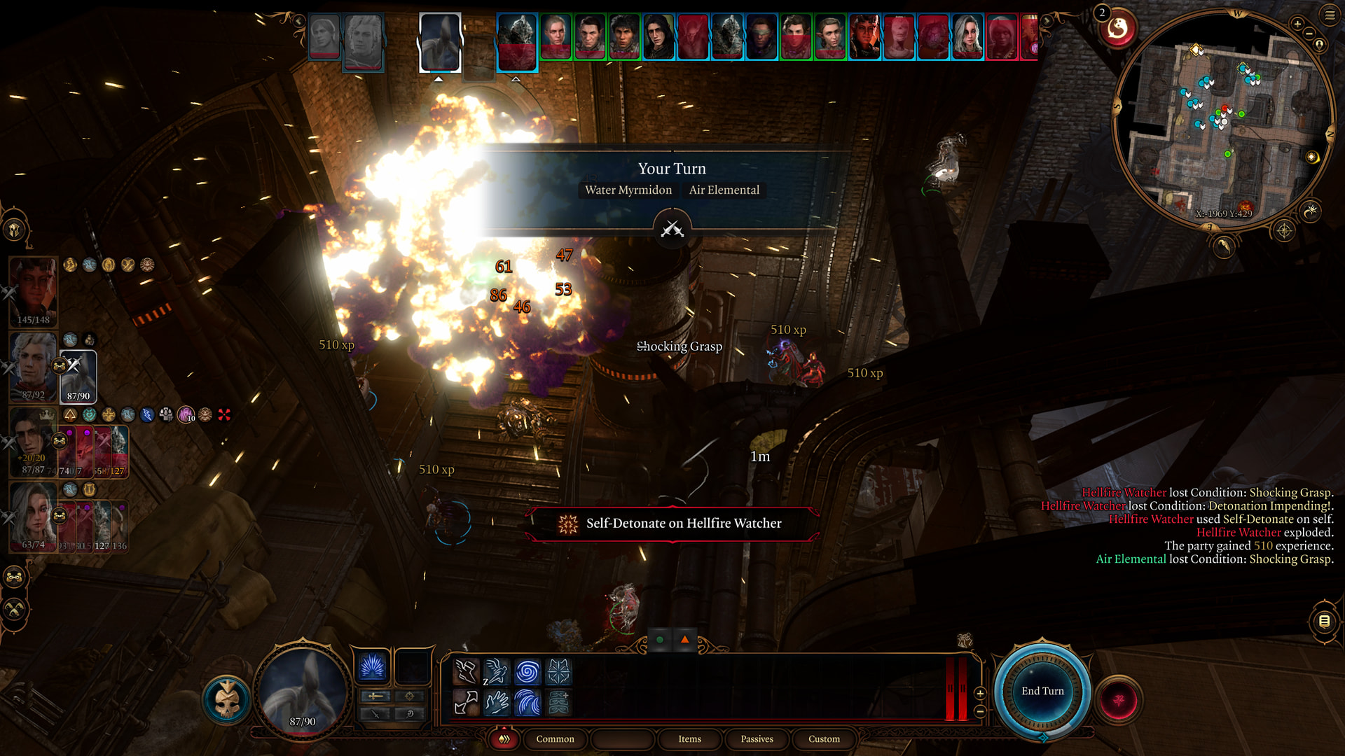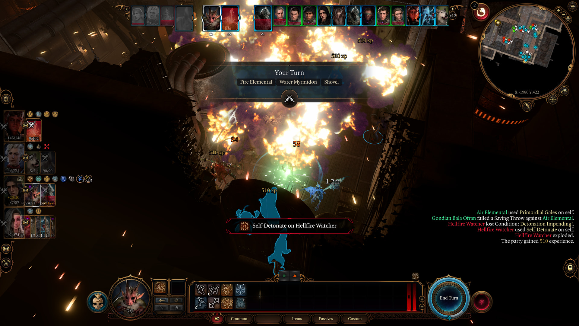 : Karlach takes down the closer IBO. This is already going much better than it did when I did it on my first playthrough, where both IBOs rushed the stairs, stunned everyone, and then blew up and killed half the party.
