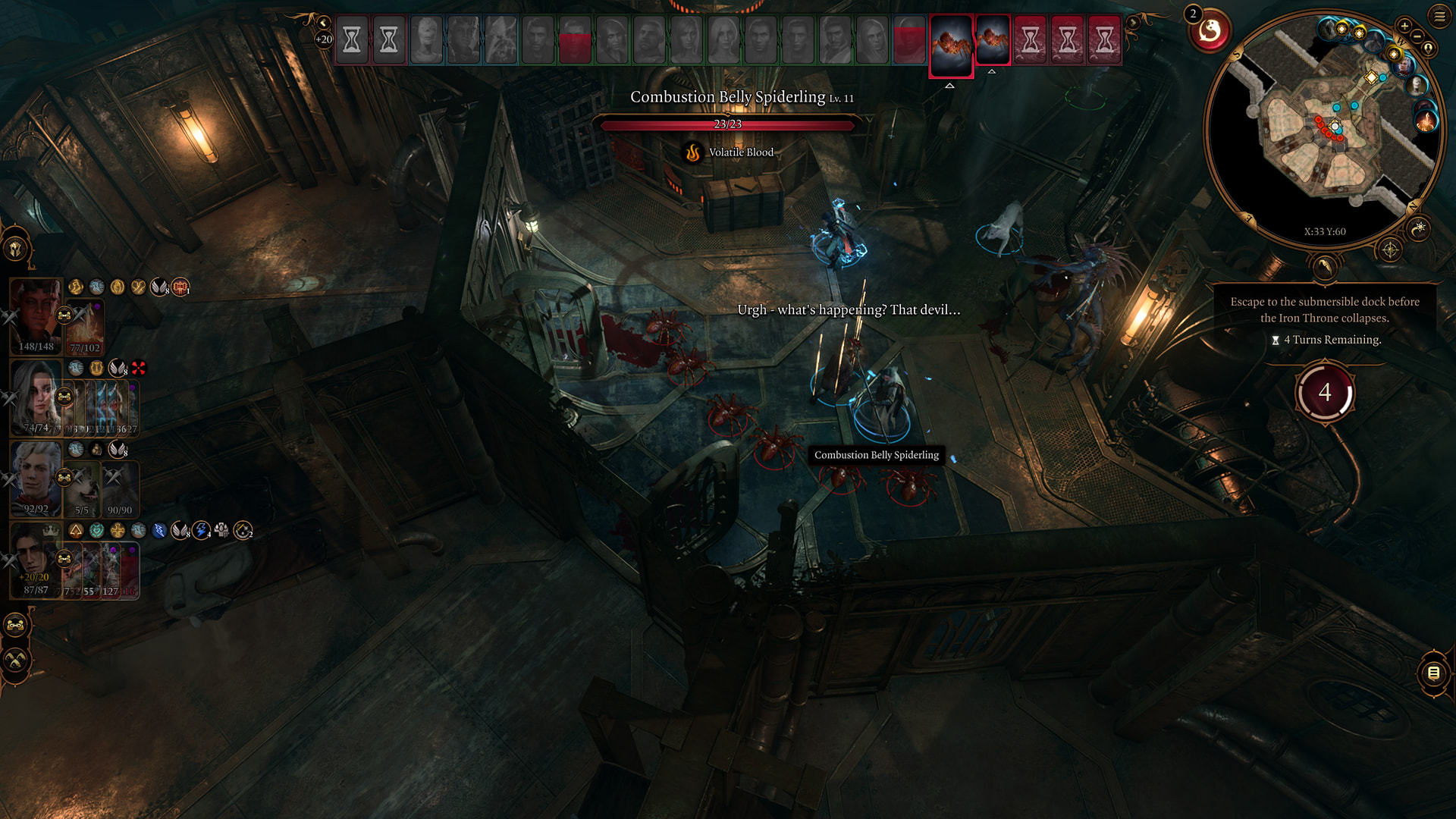: Pollux and Astarion open by attacking the nearest target, who happens to be carrying a detonator.