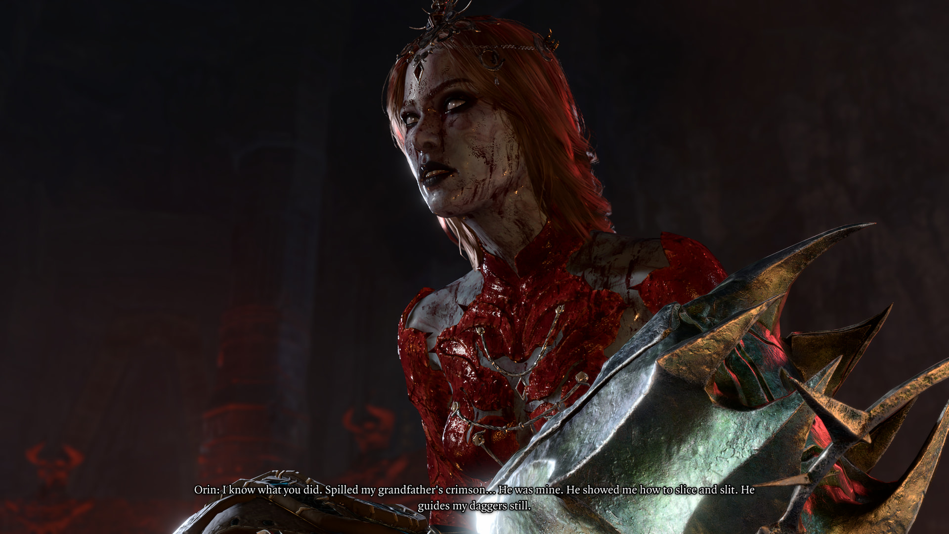 : “Lady Mizora told me everything. How Wyll slaughtered his own father, how he craves his power. How he means to make the city bow to him and him alone. This city holds no place for you - or for Ravengard’s treacherous spawn.”