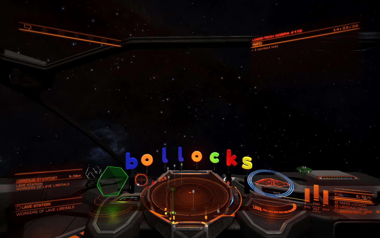 As for Quince, I’ll have to check that out, I could be done with the cash! I’ve been hanging out in Lave and the surrounding Alliance-controlled areas (As a kickstarter backer I got to start out in Lave with a Cobra Mk III and a handful of credits much like the classic 1984 start), although making money has been kind of slow.
