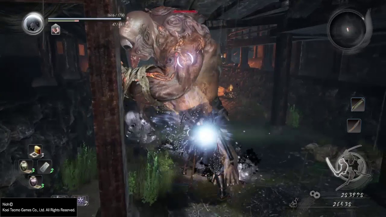 Tachibana Muneshige is fast, really fast. He is the second boss of the level and you must duel him to proceed. He in my opinion is an easier fight than Nue. His ki management is easy to interrupt. When he is making a circle with his blade rush him and interrupt it as this buffs him. Often afterwards he does an iaito move, where he sheathes his blade and sprints at you. Get ready to dodge and donât do so too early, this hit will hit hard. If far away he will pull out a bow and fire three shots, one down the middle and one on either side. These can be easily blocked or dodged forwards through. Be aggressive with Muneshige and do not let him regain stamina to allow for multiple critical hits. He also can charge up and do a flurry of swings, stay far away during this and he will use up a lot of stamina doing this. When you see him send his Guardian Spirit Raiken on the ground focus on dodging it when it shoots at you. Muneshige is weak to water and resists lightning.