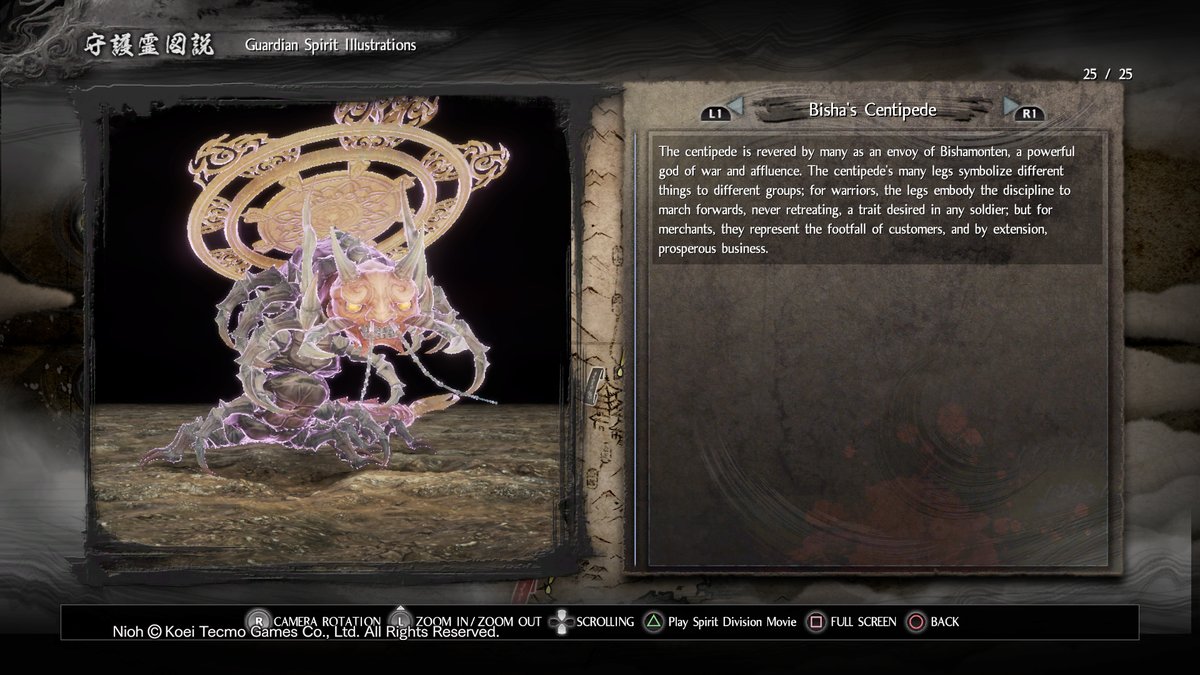 And let’s talk about Masamune’s Guardian Spirit, the Blue Dragon. Offering Ki Recovery Speed +20%, Damage Reduction (When Attacking) 10%, Elemental Damage Reduction (Guarding) +40%, Wind Damage +15%, Close Combat Damage (Full Life) +15%.