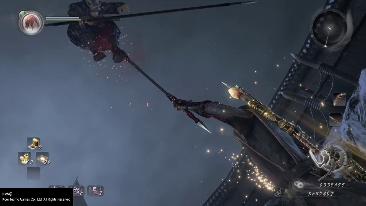 Don’t get fooled here, Date Masamune is a jerk just like Shigezane. Jerks the lot of them, the Date Clan. Masamune is the first boss to really bring Living Weapons to bear seriously, though this fight isn’t the meanest with them. Both have different effects on his moveset, Water being most obvious with the plethora of ranged attacks added in, while Wind merely increases the distance he can move during attacks, letting him continue combos on you easier after you dodge and increasing the distance covered by his grapple lunge. The only thing he has approaching true range in wind is the attack where Blue Dragon comes out to slam the ground, and that has decent wind up and recovery, so for the more “Any means” sort you can just play keep away until he tries to get his spirit to help and then line up an arrow while he’s standing back up.