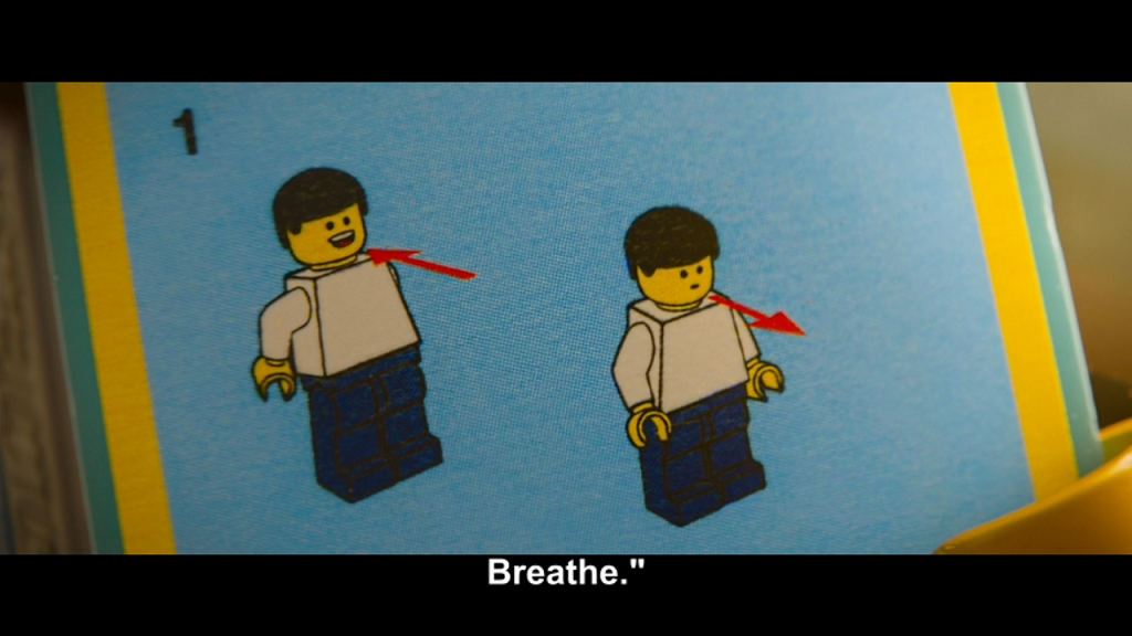 Emmet continues falling through the abyss until he lands somewhere. He is unable to move, but he is still able to think. A human boy, Finn (Jadon Sand), enters to pick Emmet up. Turns out that Finn has been playing with the entire Lego universe to control everything that has happened throughout the adventure. Emmet believes Finn is The Man Upstairs, until someone comes stomping down the stairs. It’s Finn’s father (also played by Will Ferrell). Finn tells his dad about his imaginative scenario with Lord Business’s evil plan, but he scolds Finn for playing with the playsets as he had his own intentions for them. Due to the father’s control, everybody fighting Lord Business’s forces are taken out and glued together. This plays out in the Lego world as the Kragle continues squirting glue, as Finn’s dad uses Krazy Glue to stick everything together. Emmet decides he must get Finn’s attention. He starts moving for a brief bit, making twitchy movements that the father thinks he sees, but Finn definitely notices. Emmet flops off the table, right next to the Piece of Resistance. Finn distracts his dad, giving him a chance to pick Emmet up and send him through a “magic portal” back into the Lego world.