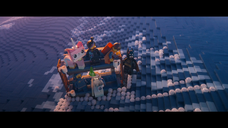 Batman leads everyone through the sun, taking them through “Middle Zealand”, before moving onto Cloud Cuckooland. It’s a happy, whimsical place led by Princess Unikitty (Alison Brie). She guides the four to a giant dog head where all the other Master Builders are gathered. They include Superman (Channing Tatum), Green Lantern (Jonah Hill), Wonder Woman (Cobie Smulders), Benny the 1980-something space guy (Charlie Day), Shaquille O’Neal, William Shakespeare, Abraham Lincoln, Cleopatra, Dumbledore, Gandalf, Michelangelo (both the sculptor and the Ninja Turtle), and Milhouse Van Houten. Emmet is presented before them as The Special, but he’s interrupted by a large Master Builder pirate known as Metal Beard (Nick Offerman). He tells the story of how he and some other Master Builders tried to infiltrate Lord Business’s lair before they got defeated and he only made it out with his head and vital organs before rebuilding himself into what he is now. Emmet continues by admitting that he is unqualified to save them, angering everybody. Suddenly, Bad Cop and his forces return to attack all of Cloud Cuckooland. They found the heroes because of a tracker on Emmet’s leg. The heroes escape, along with Unikitty and Benny, building a submarine to take them underwater as they evade Bad Cop. While the Master Builders are at work, Emmet asks what he should be doing. Vitruvius tells him to think for himself, and he gets an idea. They build their sub and get into the ocean. Unikitty watches sadly as her home is destroyed, while the other Master Builders are captured by the villains.