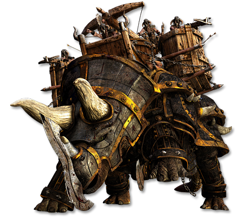 The war Triceratops reminds me of paraworld. https://vignette.wikia.nocookie.net/paraworld/images/d/db/Titan.jpg/revision/latest?cb=20090402214907&path-prefix=en