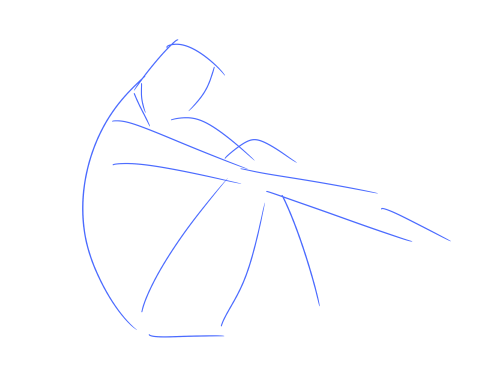 The gestural line is a general sort of guideline for the flow of action or energy within a pose. It will typically follow the line of the spine and the legs. Depending on what kind of pose you’re working with, it’s also helpful to draw the line of the shoulders and hips.