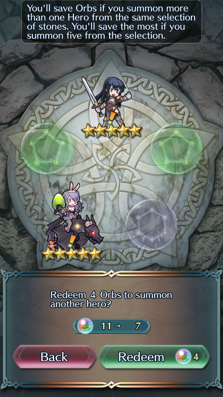 I don’t know about you, but green seems to be the most elusive colored orb. Even after not getting Dancer Inigo, they don’t seem to come up often for me. It’s really rather rude.