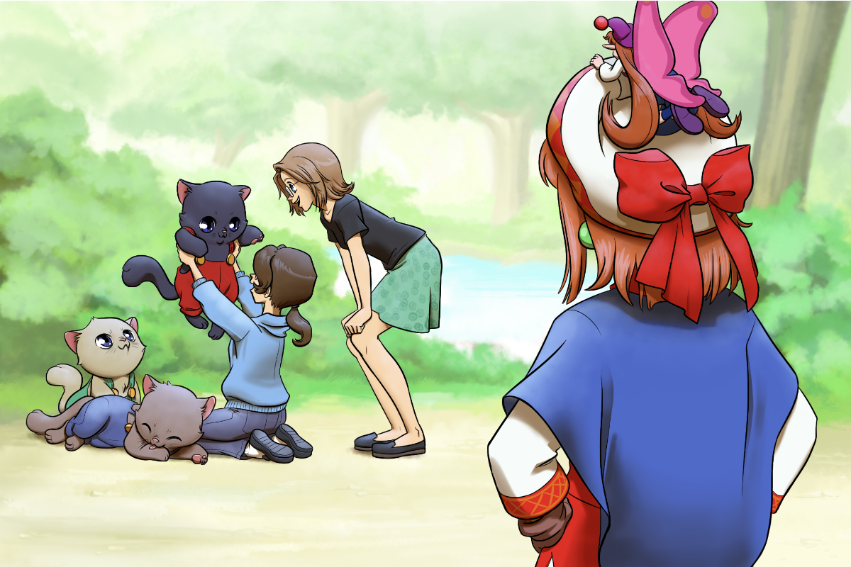Fun fact but I had Genghis sent me examples of art from Rhapsody to help me come up with this title card. It’s only looking back at the LP videos do I realize that Cornet and Kururu’s outfits are pretty different in the art than in the game! We haven’t finished the LP yet, so I’m hoping that there’s a costume change at some point, otherwise this titlecard might be a wee bit inaccurate!