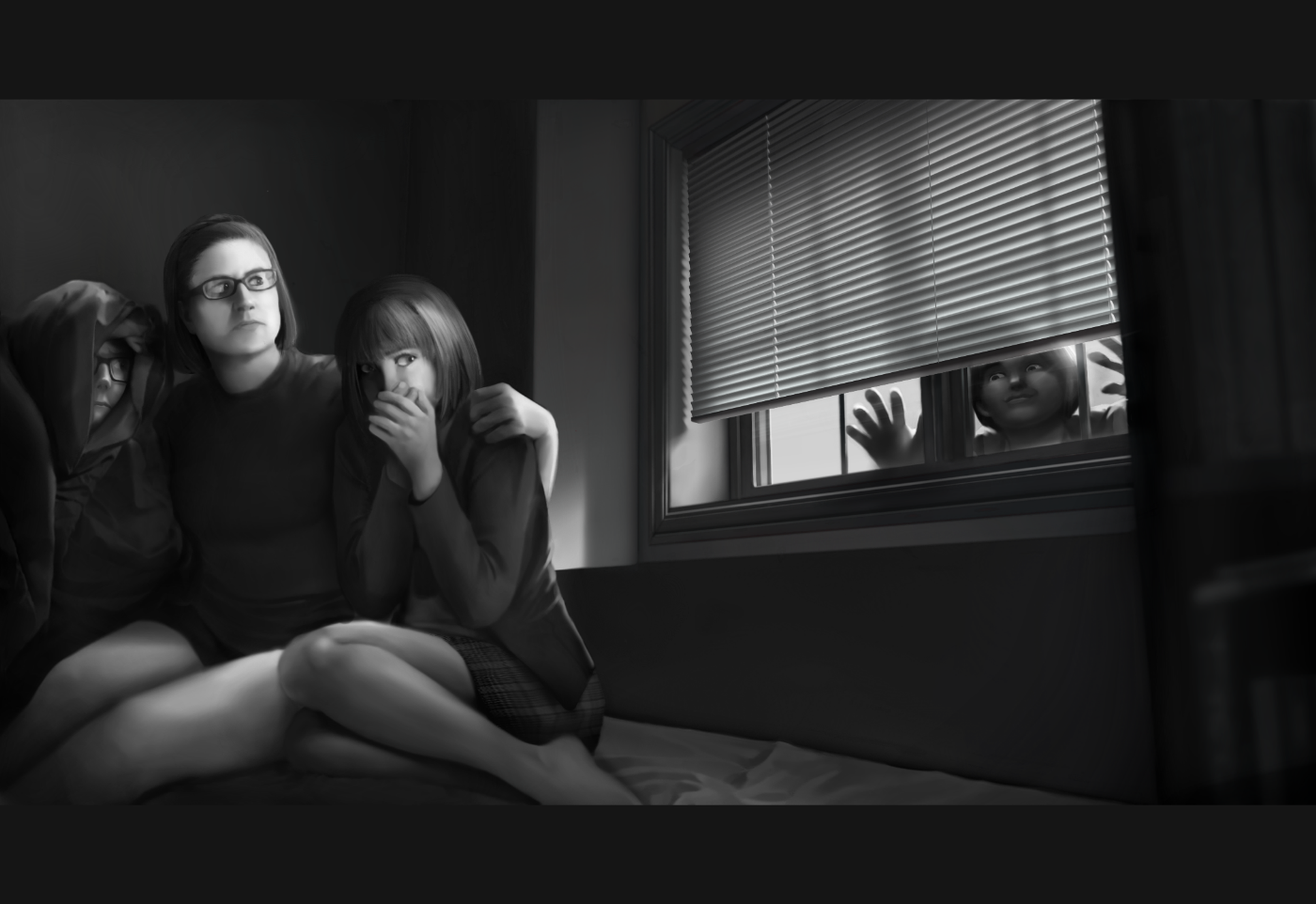 The influence for this one should (hopefully) be pretty obvious, I was trying to crib off the covers for the original Goosebumps books. Originally I was going to have the computer oozing green slime, but I kinda felt like that wasn’t enough to make it feel like a real Goosebumps cover. The alternate idea I had was to have the screen be broken and a hand coming out of the screen as a reference to the “Don’t go into the Basement” book cover, but I found that the bright light/silhouette idea seemed more eerie and mysterious.