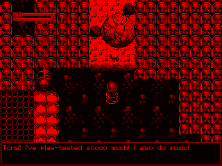 : This is another reason why you just want infinite HP. The boss fires skulls at you on this seizure-inducing background and everything hurts to look at. Just stick Roy in the middle of the screen and hold down the fire button.