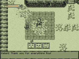 : The boss teleports around once he takes cutscene damage, and then starts hurling these gigantic magic things at you. They take off like a third of Roy’s HP each and are very hard to dodge - the hitboxes are deceptively huge.