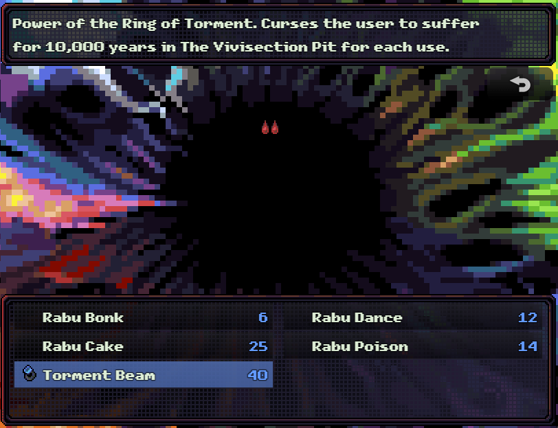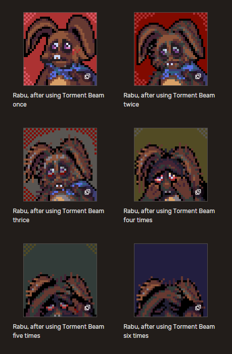 : If Rabu uses Torment Beam, his portrait changes every time he does.