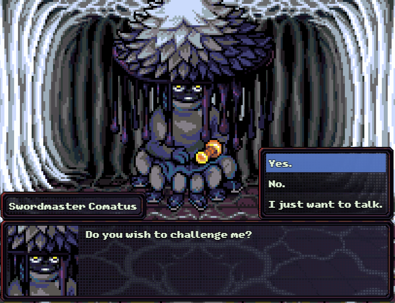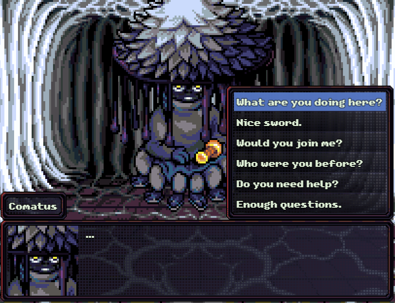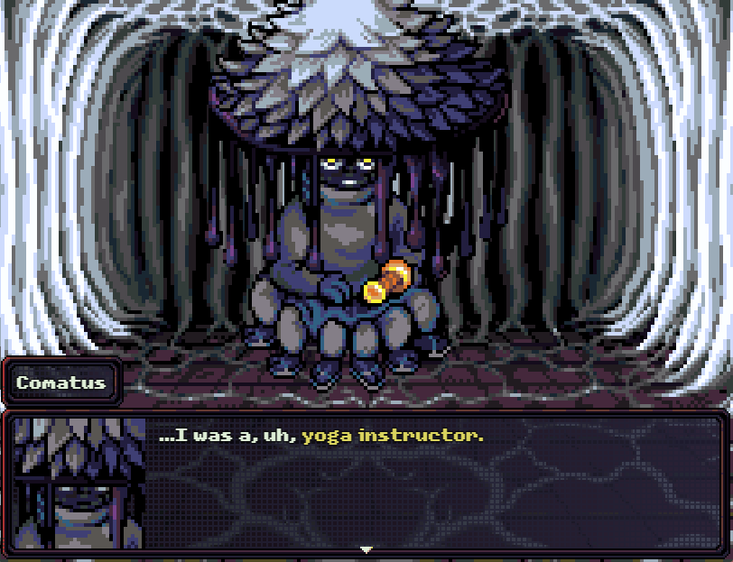 : Comatus shows up at the basement camp the day after you beat him. If you asked him about doing yoga..