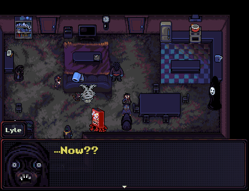 : We then get jumpscared by this guy at the door. This is Dan. Unfortunately, we missed the best moment he has.