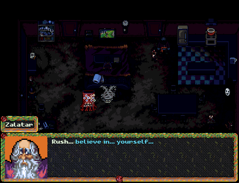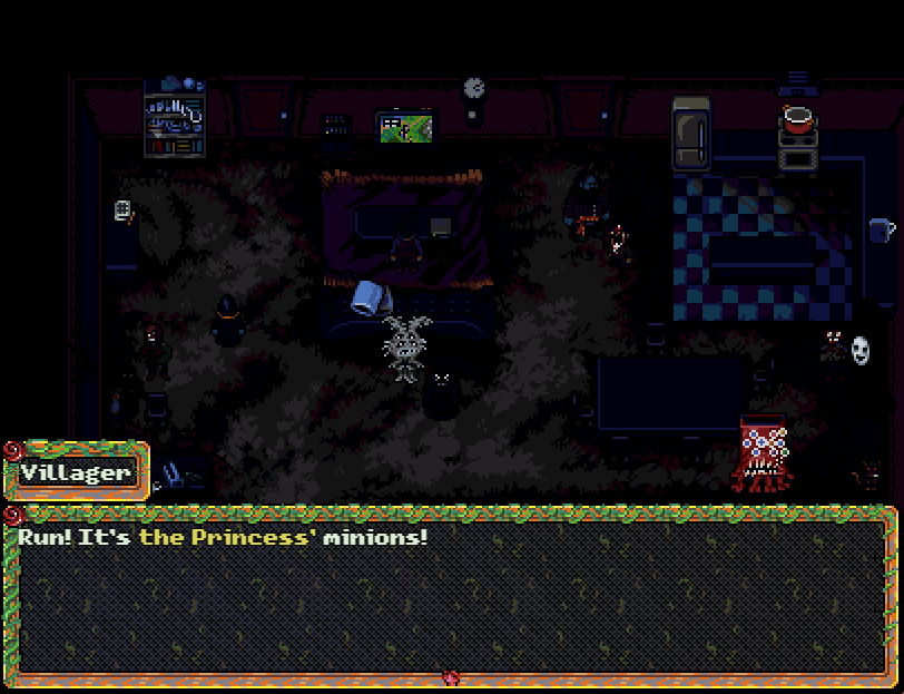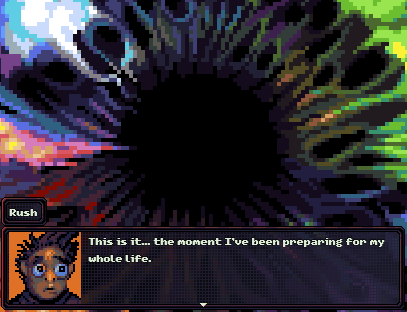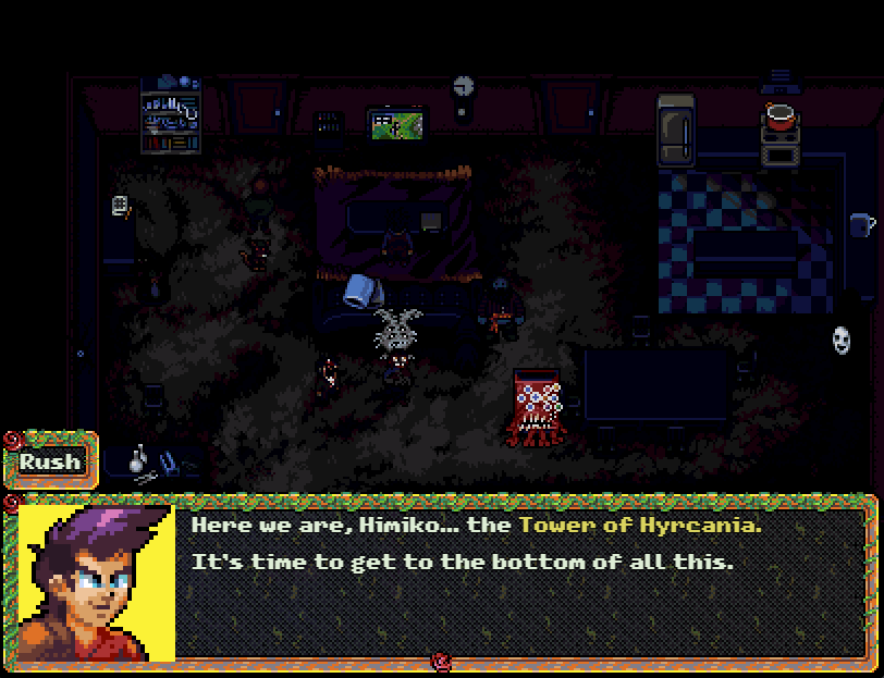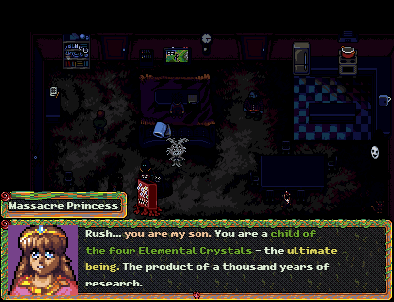 : “Spare me the tough talk. What’s your plan, Massacre Princess?” : “So.. you haven’t figured it out yet? You never told him, Maldark?” : “N-no.. you.. you can’t say it…” : The ending is that he’s Steven Universe? : I can’t believe Rush was Shadow the Hedgehog all along. : “Wh-what?! But how can this be? I…” : “I..I’m sorry, Rush. I should have told you…” : “Rabu… Rabu!?!” : “Wrong, Massacre Princess!” : “Wh-what!?” : “Rush may be your son.. but there aren’t four elemental crystals..” : “N-no…”You navigate your way through a tiresome dungeon with lots of pits. Every time you fall through a pit, you have to start back at the beginning. Finally, you reach the Princess’s throne room.